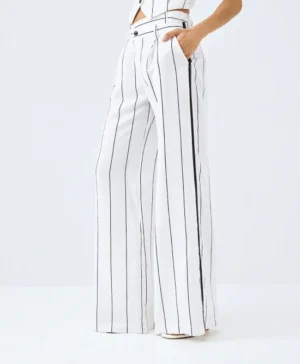 ACCESS Asymmetric Striped Wide-Leg Pants with Button Detail