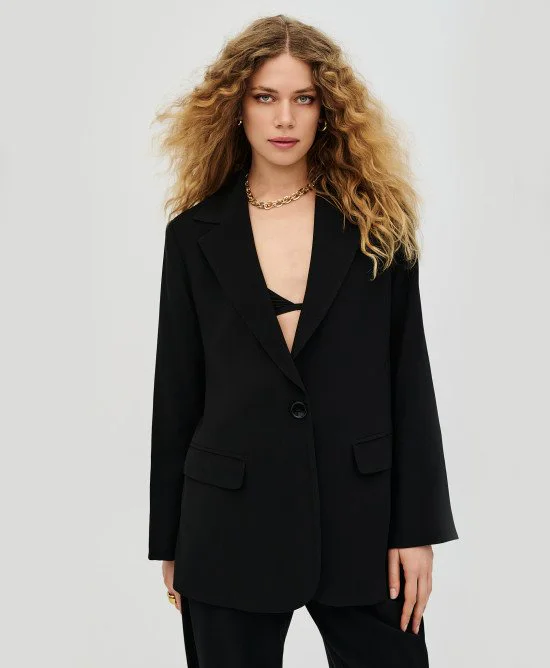 Oversized σακάκι ACCESS με πέτο γιακά, βάτες και διακριτικά ανοίγματα στις μανσέτες. Σύγχρονη tailored αισθητική.