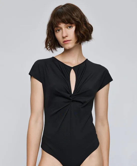Το ACCESS Bodysuit with Cut-Out and Knot Detail Black είναι ένα κομψό και μοντέρνο κορμάκι που αναδεικνύει τη σιλουέτα και προσθέτει ιδιαίτερο στυλ στην γυναικεία γκαρνταρόμπα.