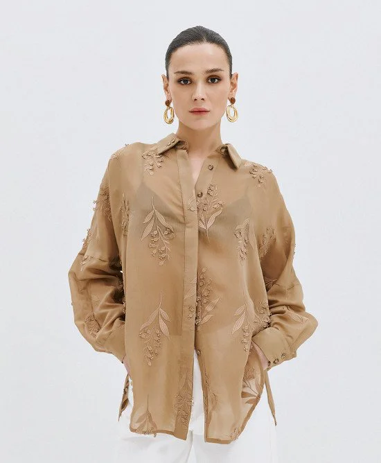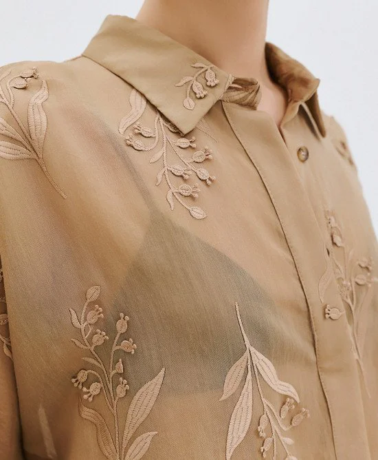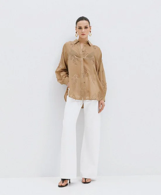 Μακρυμάνικο πουκάμισο ACCESS Embroidered Shirt με γιακά, φαρδιά γραμμή, κεντήματα και κλείσιμο με κουμπιά μπροστά και στις μανσέτες. Από 75% Tencel, 25% Nylon. 👚✨