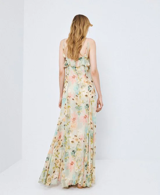 Το ACCESS Floral Maxi Dress with Ruffles είναι ένα ρομαντικό και αέρινο μάξι φόρεμα που ξεχωρίζει για το κομψό φλοράλ μοτίβο και τις θηλυκές λεπτομέρειες. Η V λαιμόκοψη και οι λεπτές ρυθμιζόμενες τιράντες αναδεικνύουν τη σιλουέτα, ενώ τα διακοσμητικά κορδόνια με λουλούδια στις τιράντες προσθέτουν μια ιδιαίτερη και κομψή πινελιά.