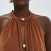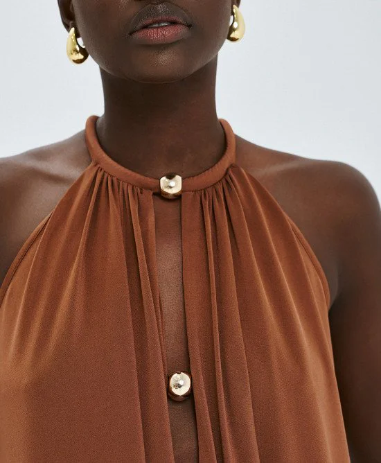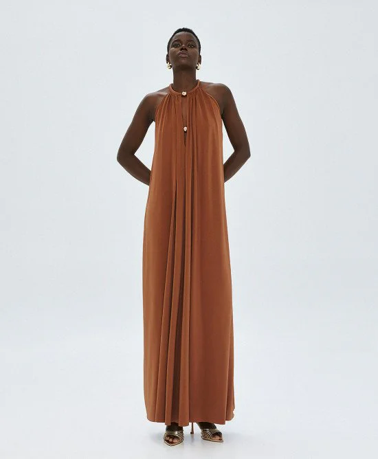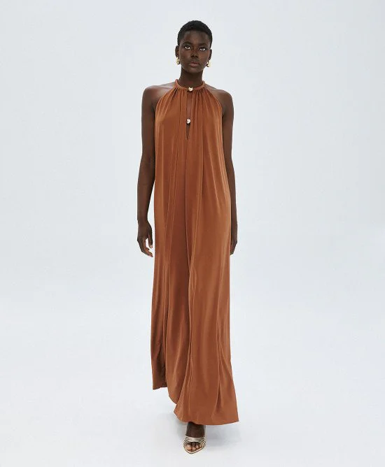 Το ACCESS Halter Maxi Dress with Metallic Details είναι ένα κομψό και εντυπωσιακό μάξι φόρεμα που αναδεικνύει τη θηλυκότητα με μοντέρνες λεπτομέρειες. Η halter λαιμόκοψη αναδεικνύει τους ώμους και το ντεκολτέ, ενώ οι μεταλλικές λεπτομέρειες προσθέτουν λάμψη και κομψότητα στο σχέδιο.