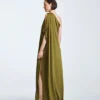 Το ACCESS One-Shoulder Dress with Metallic Detail είναι ένα εντυπωσιακό μάξι φόρεμα που αποπνέει κομψότητα και δυναμισμό. Ο asymmetric σχεδιασμός με έναν ώμο αναδεικνύει τη σιλουέτα, ενώ η ενσωματωμένη ντραπέ λεπτομέρεια τύπου κάπας αγκαλιάζει τον ώμο και ρέει μέχρι το τελείωμα, δημιουργώντας αέρινη κίνηση.