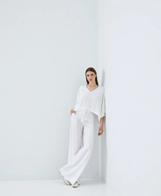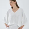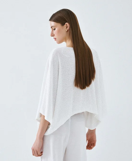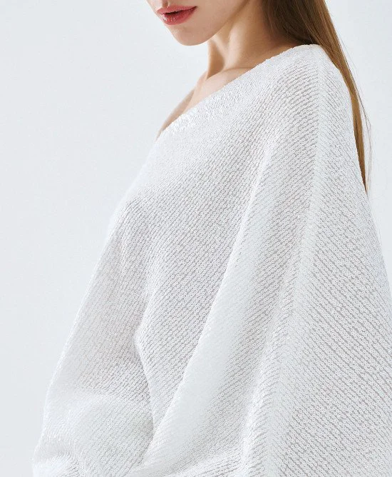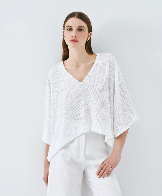 Η V λαιμόκοψη αναδεικνύει το ντεκολτέ, ενώ τα μανίκια νυχτερίδα χαρίζουν άνεση και μοντέρνα σιλουέτα. Η one size γραμμή προσφέρει ευκολία στην εφαρμογή και κομψό αποτέλεσμα σε διαφορετικούς σωματότυπους.