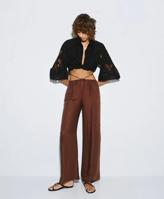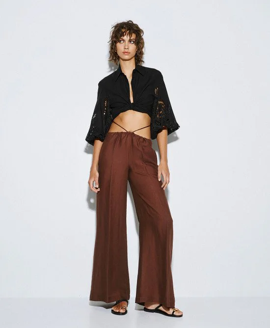 Παντελόνα ACCESS Wide-Leg Pants with Drawstring με πλαϊνές τσέπες, κορδόνια στη μέση με μεταλλικά τελειώματα και wide-leg γραμμή από 62% Rayon, 38% Linen. 👖✨