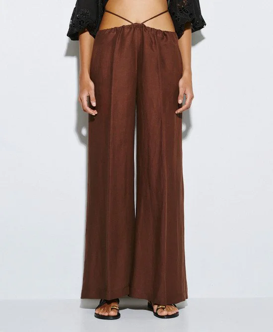 ACCESS Wide-Leg Pants with Drawstring CHOCO