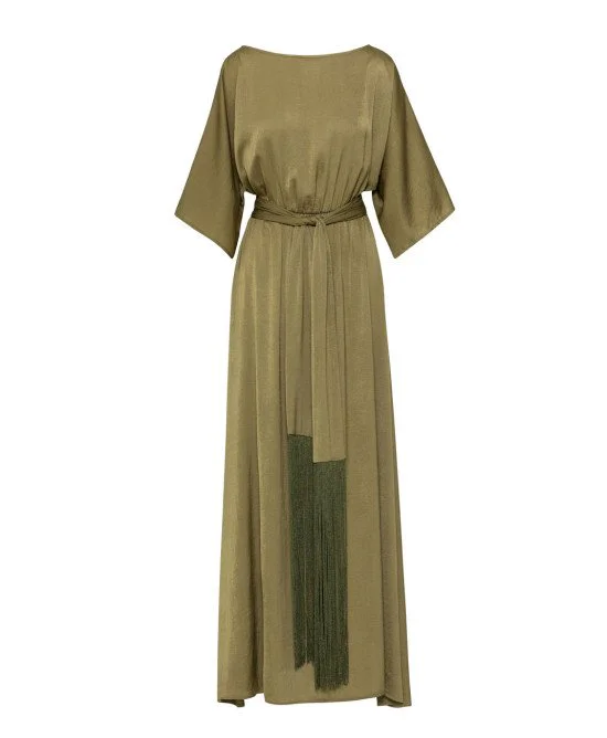 Το ACCESS Maxi Dress with Fringe Belt είναι ένα κομψό μακρύ φόρεμα με αέρινη γραμμή και διακριτικές boho επιρροές. Η χαμόγελο λαιμόκοψη αναδεικνύει το ντεκολτέ με θηλυκό τρόπο, ενώ τα φαρδιά 3/4 μανίκια προσθέτουν κομψότητα και κίνηση.