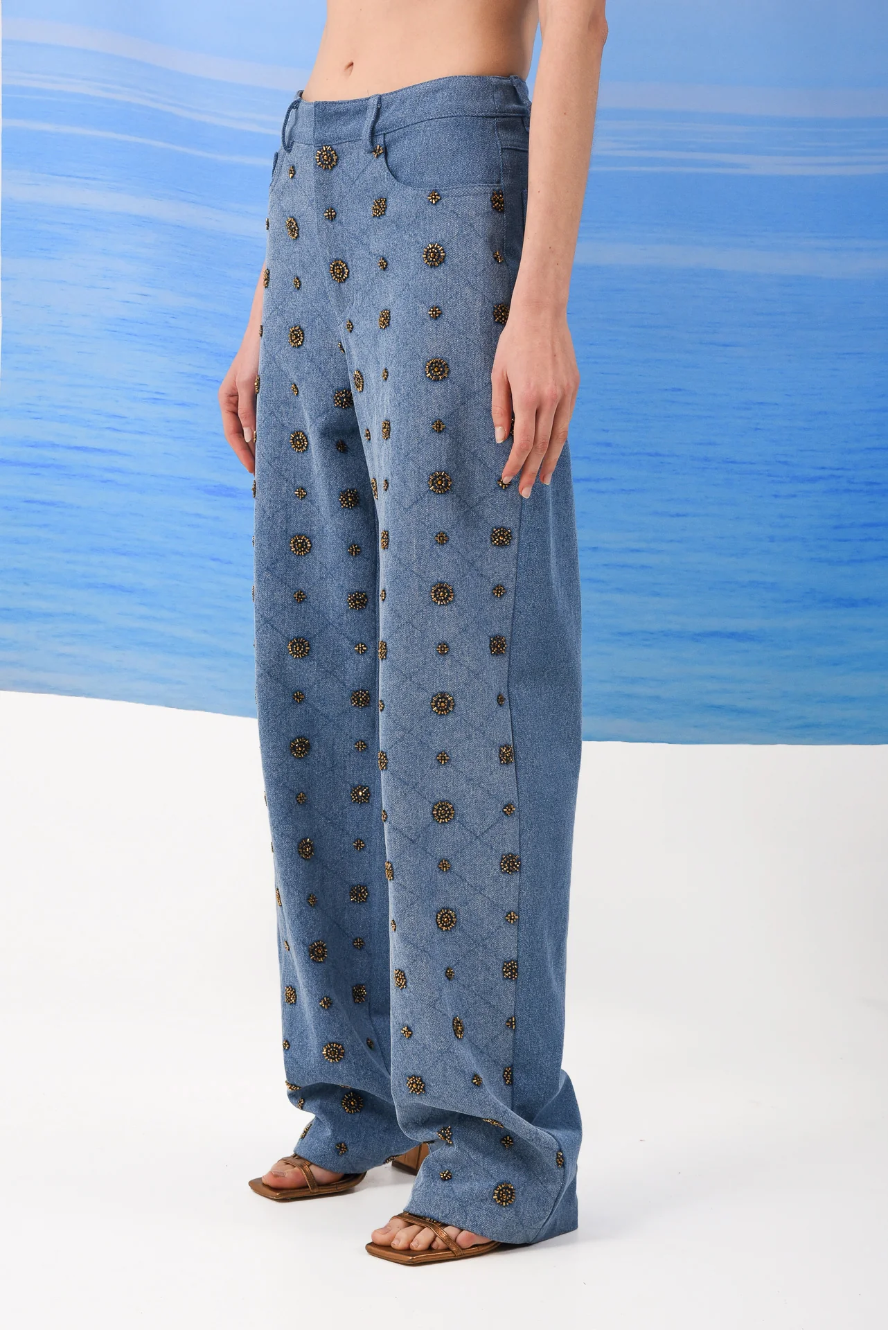 Ανακάλυψε το ARPYES AMBER Jeans Allover Beaded, ένα denim παντελόνι που συνδυάζει εντυπωσιακό design με άνεση. Κατασκευασμένο από structured denim και διακοσμημένο με allover χάντρες, αποτελεί ένα ξεχωριστό statement κομμάτι που δίνει λάμψη σε κάθε εμφάνιση.