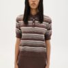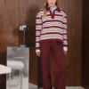 Η ARPYES Chase Knitted Polo Blouse σε Bordeaux Combo αποτελεί μια σύγχρονη εκδοχή της κλασικής polo μπλούζας, με fashion-forward αισθητική. Το πλεκτό ύφασμα αγκαλιάζει απαλά το σώμα, ενώ οι έντονες οριζόντιες ρίγες σε μπορντό, cream και γαλάζιο χαρίζουν statement χαρακτήρα.