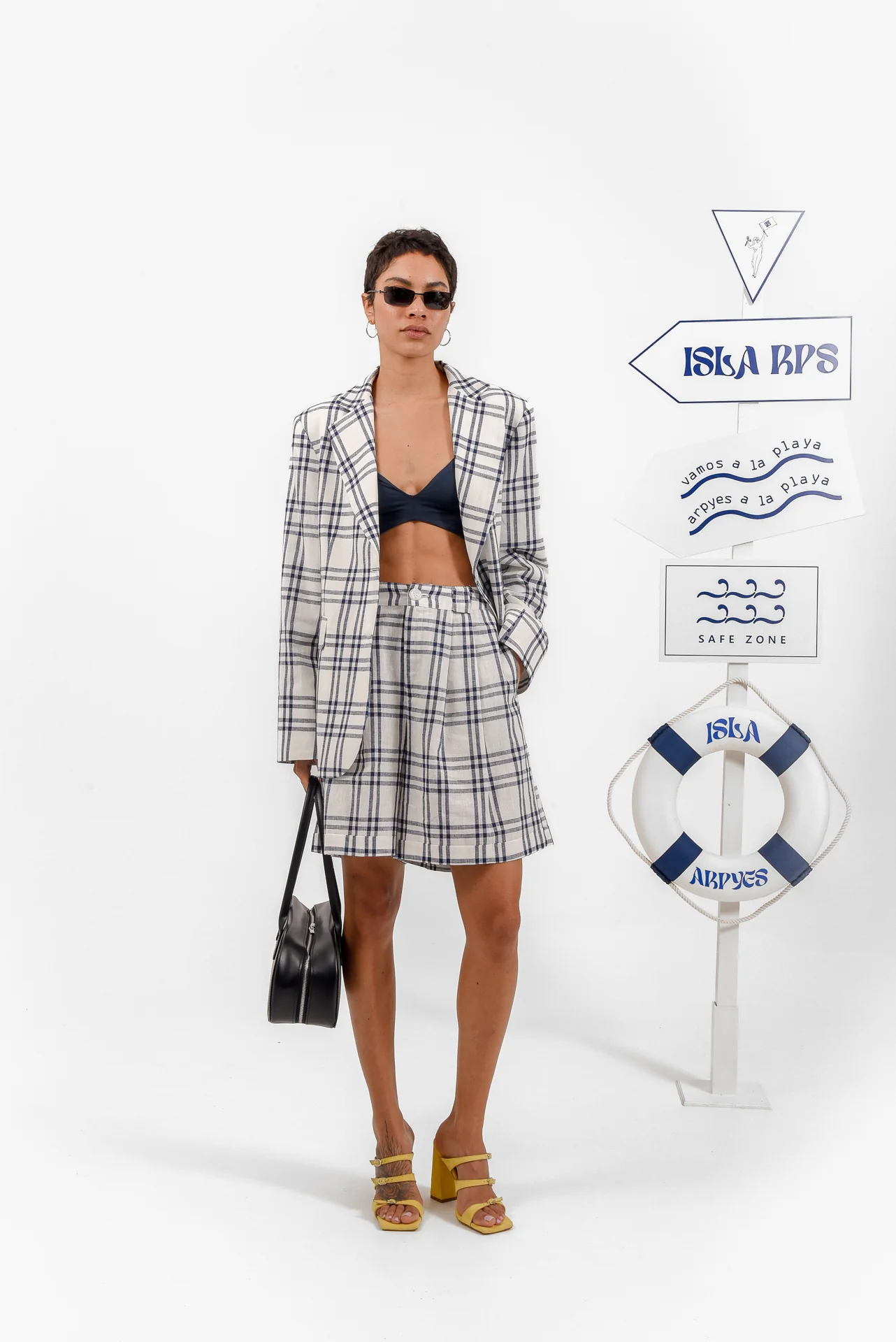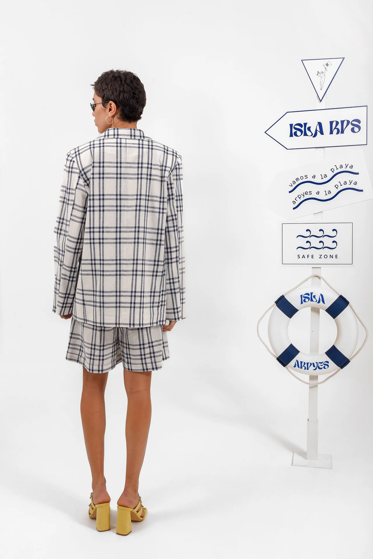 Ανακάλυψε το ARPYES Pelagos Blazer, ένα σακάκι που συνδυάζει κομψότητα και άνεση. Η relaxed tailored γραμμή του σε συνδυασμό με το ελαφρύ καρό ύφασμα από λινό και βαμβάκι δημιουργεί ένα σύγχρονο αλλά διαχρονικό αποτέλεσμα.