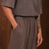 Το ARPYES Unique Pants Brown αποπνέει την απόλυτη ισορροπία ανάμεσα στην άνεση και το ανεπιτήδευτο στυλ. Κατασκευασμένο από μαλακό βαμβάκι με washed (stone wash) επεξεργασία, προσφέρει υπέροχη αίσθηση στο δέρμα και μια διακριτική vintage υφή που κάνει κάθε κομμάτι μοναδικό.