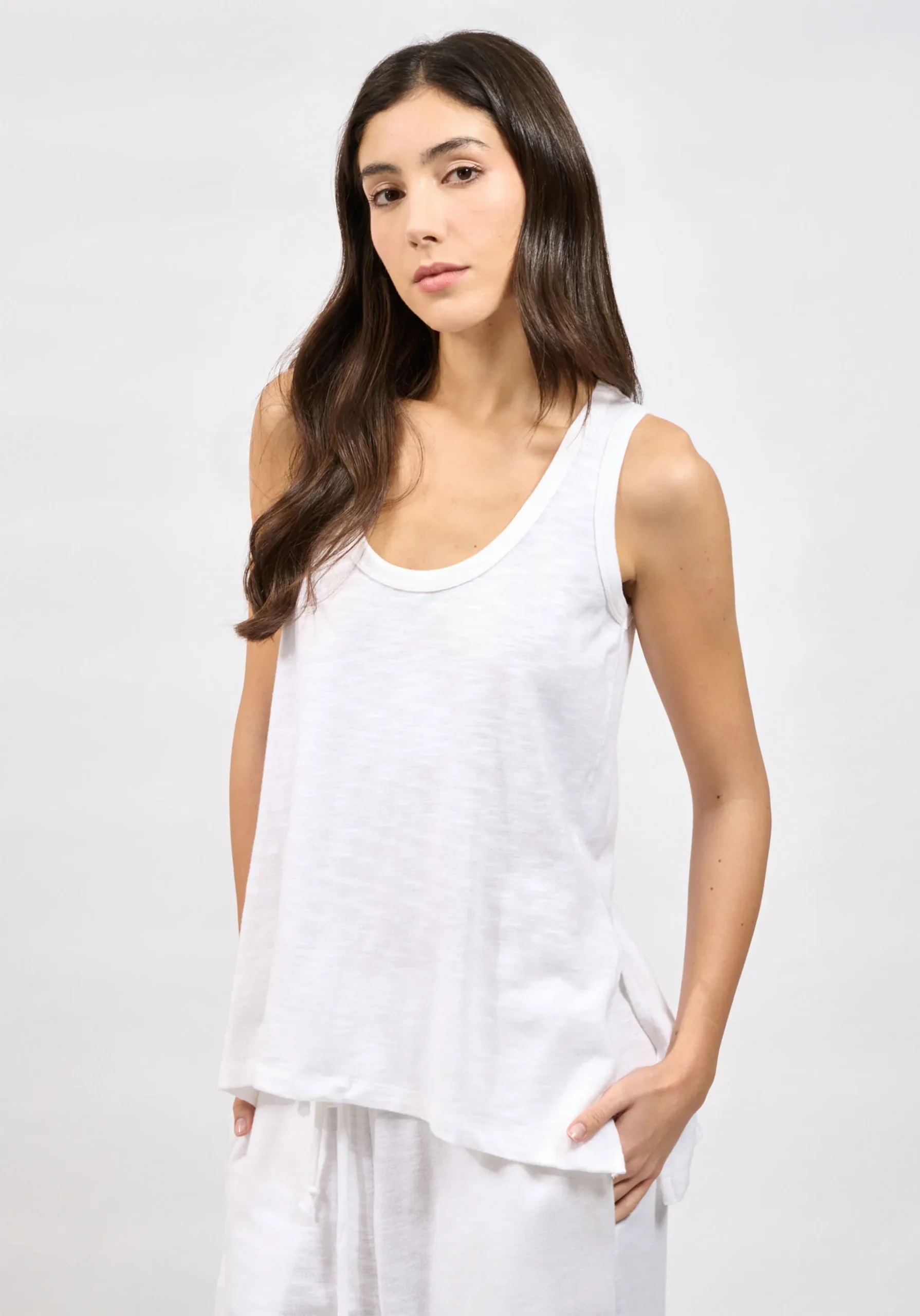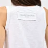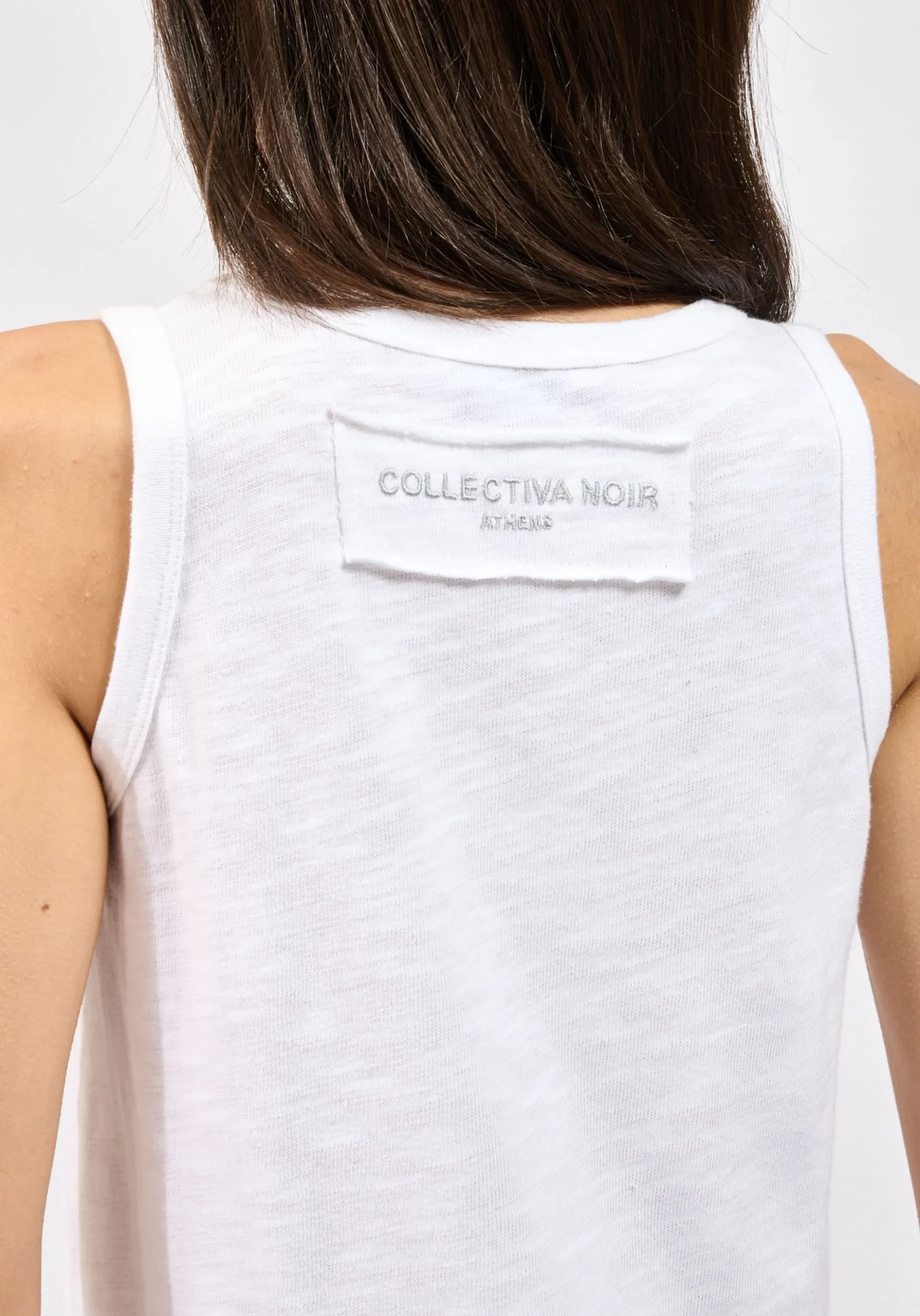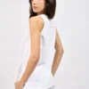 Το τοπ διαθέτει αμάνικο σχεδιασμό και φαρδιά στρογγυλή λαιμόκοψη, δημιουργώντας ένα σύγχρονο και κομψό look που μπορεί να συνδυαστεί εύκολα με παντελόνια, φούστες ή σορτς. Η χαλαρή εφαρμογή του χαρίζει ελευθερία κινήσεων και άνεση όλη την ημέρα.