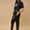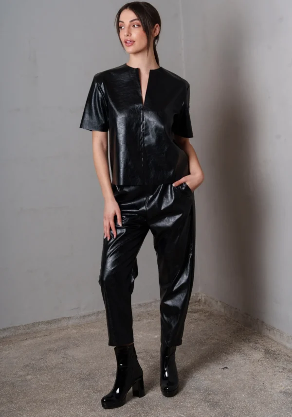 Παντελόνι carrot σε μαύρο χρώμα από οικολογική δερματίνη
