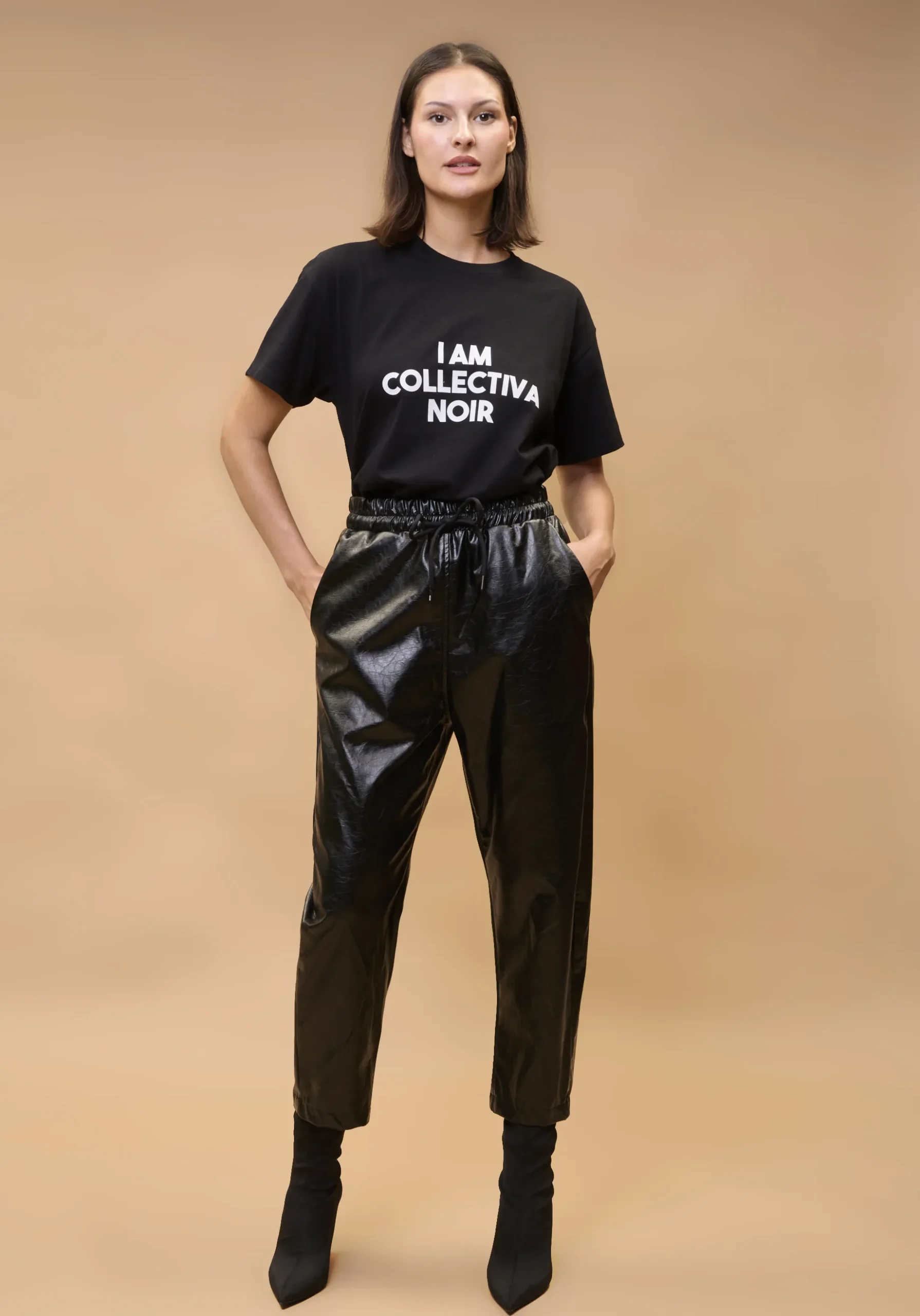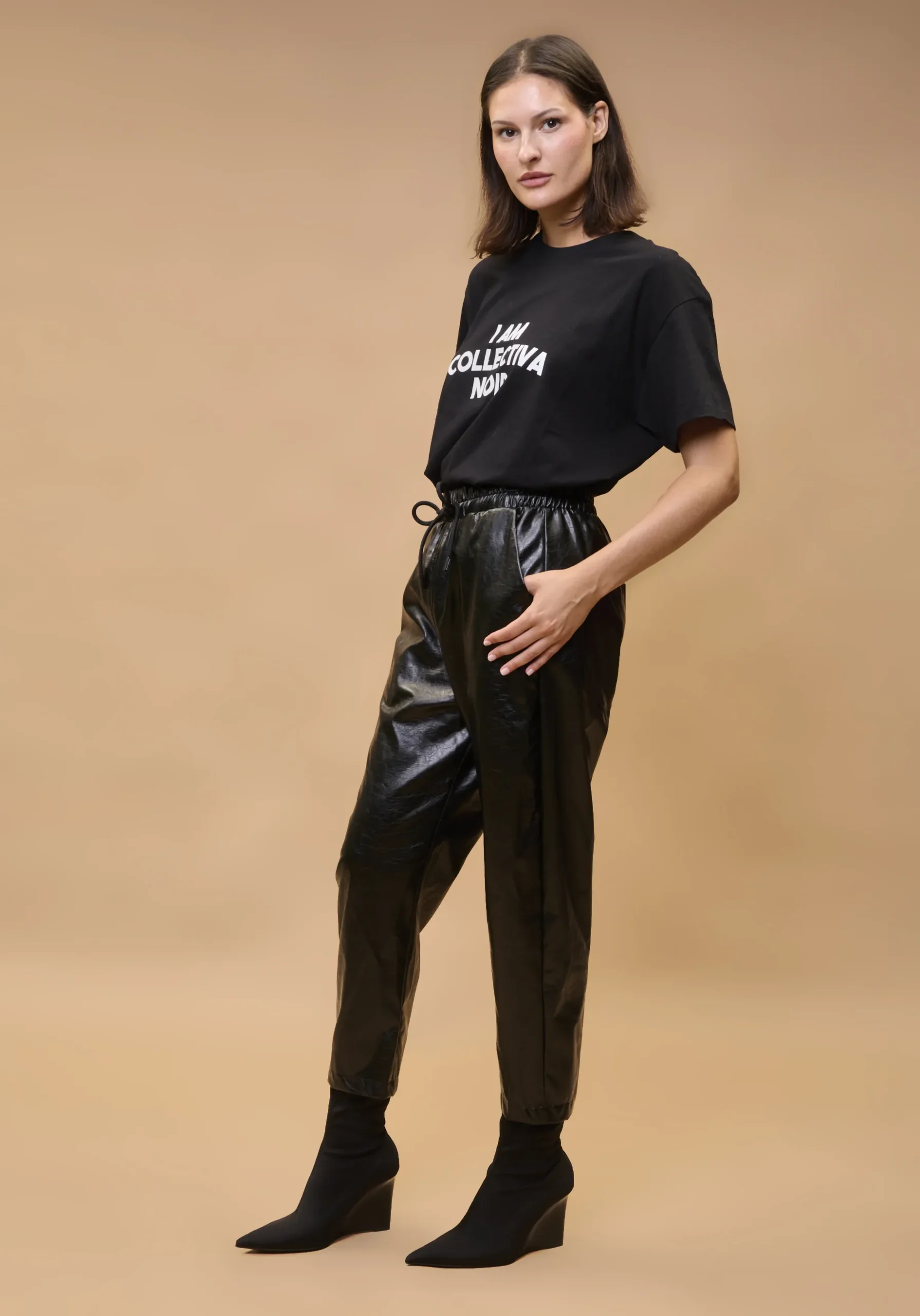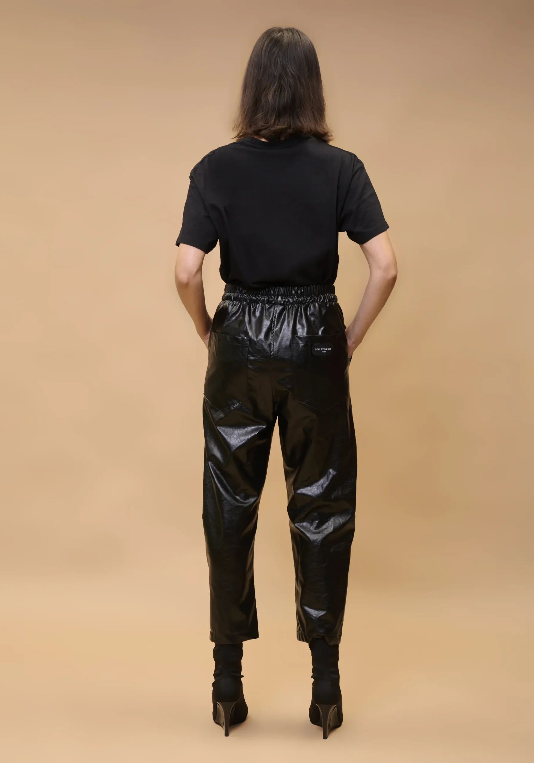 Τα COLLECTIVA Noir Charlot Pants είναι το top seller carrot παντελόνι από οικολογική δερματίνη, συνδυάζοντας στυλ και άνεση. Διαθέτουν ελαστική μέση με λάστιχο και κορδόνι για τέλεια εφαρμογή, δύο πλαϊνές τσέπες και δύο πίσω τσέπες για πρακτικότητα. Το κανονικό μήκος και η κανονική γραμμή το καθιστούν ιδανικό για καθημερινές ή βραδινές εμφανίσεις.