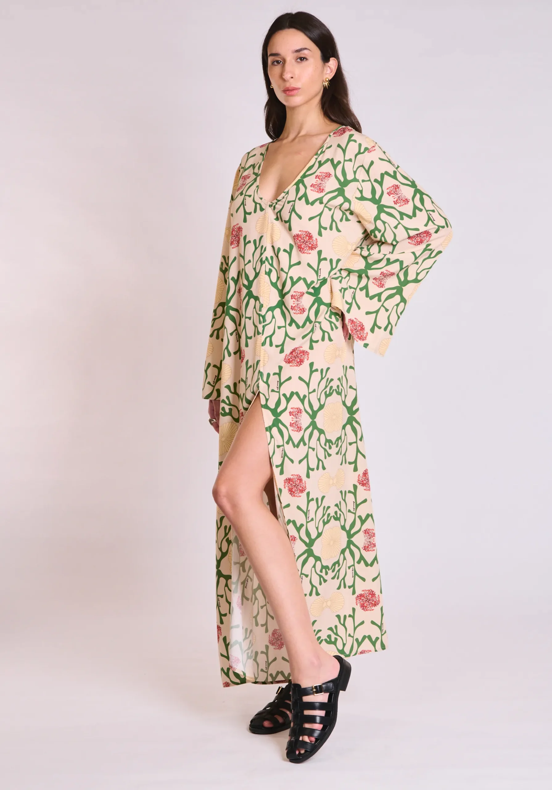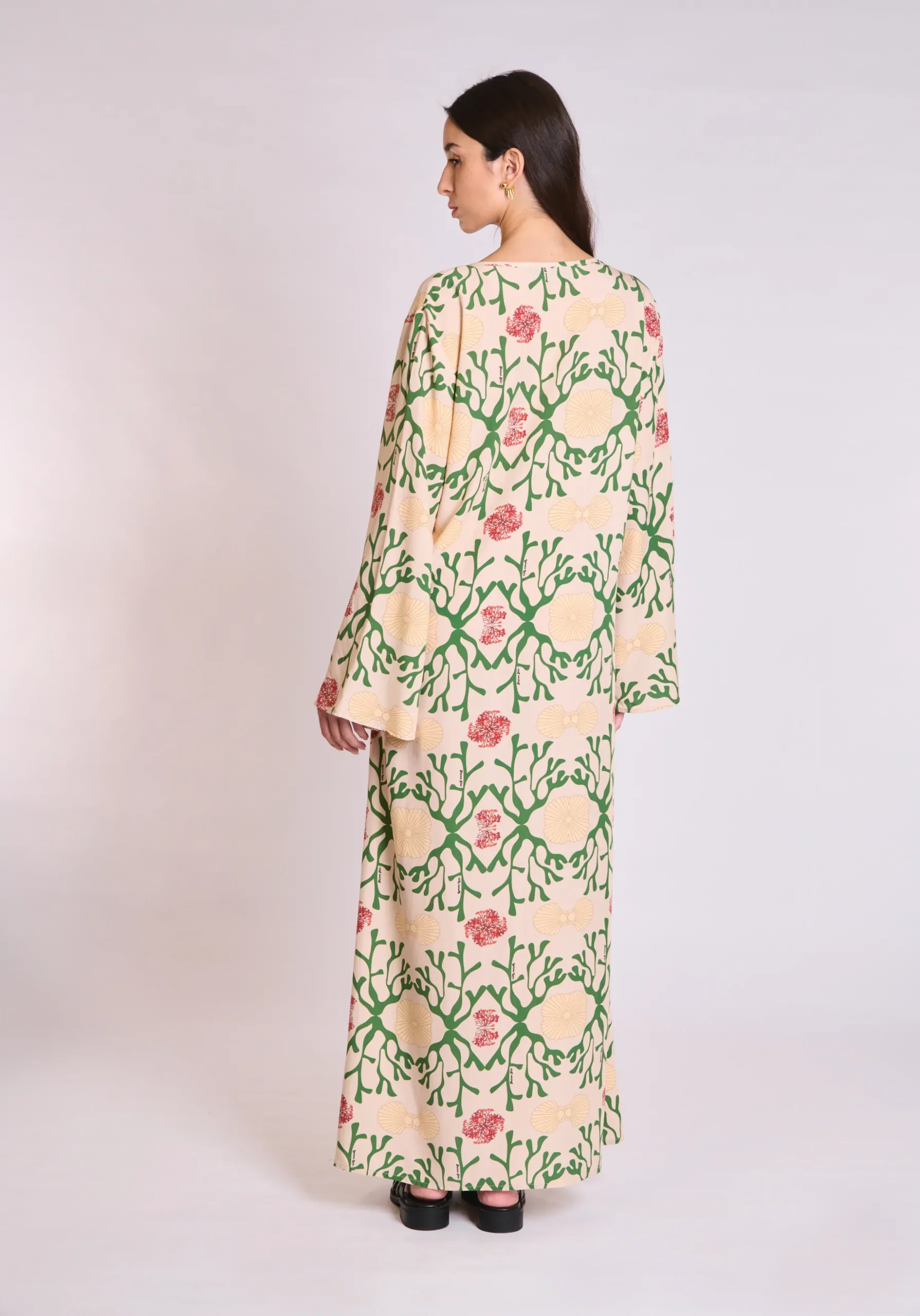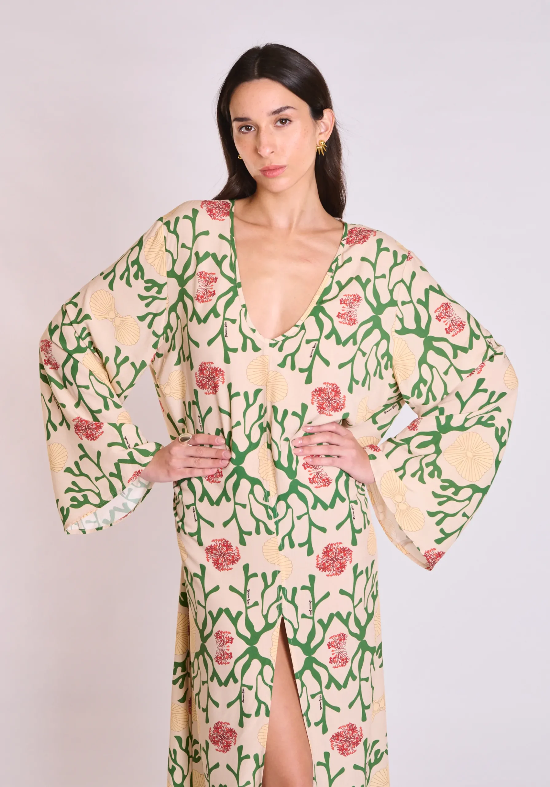 Το Collectiva Noir Cliff Dress είναι ένα εντυπωσιακό γυναικείο μακρύ φόρεμα με statement botanical print και ρευστή γραμμή. Διαθέτει βαθύ V λαιμόκοψη, μακριά μανίκια και μπροστινό σκίσιμο που προσθέτει κίνηση και κομψότητα. Κατασκευασμένο από 100% Viscose Eco Vero. Designed in Athens και Made in Greece.