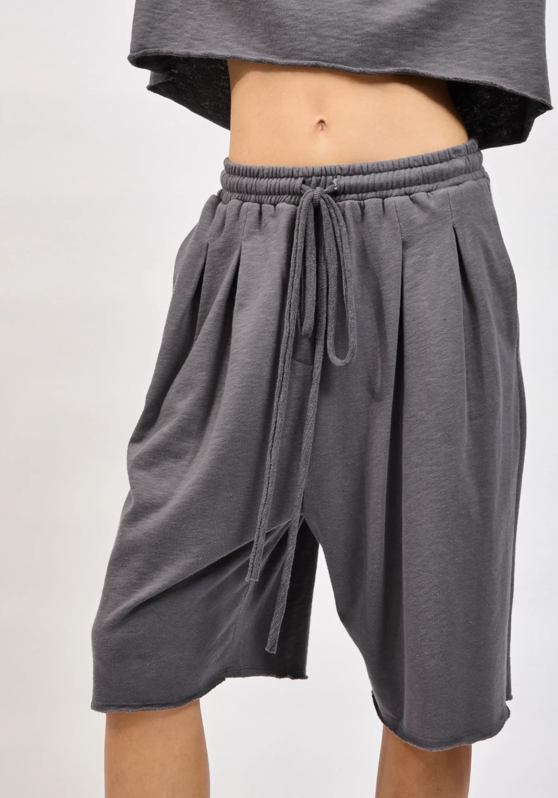 Η βερμούδα διαθέτει mid-rise εφαρμογή και ελαστική μέση με ρυθμιζόμενο κορδόνι, προσφέροντας σταθερή αλλά και άνετη εφαρμογή στο σώμα. Οι μαλακές μπροστινές πιέτες προσθέτουν κομψότητα και διαμορφώνουν μια πιο σύγχρονη σιλουέτα.