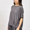 Ο σχεδιασμός του διαθέτει φαρδιά μανίκια μέχρι τον αγκώνα, δημιουργώντας μια εντυπωσιακή αλλά ταυτόχρονα κομψή σιλουέτα. Η ασύμμετρη γραμμή στο τελείωμα προσθέτει μοντέρνο χαρακτήρα και κάνει το ρούχο να ξεχωρίζει.