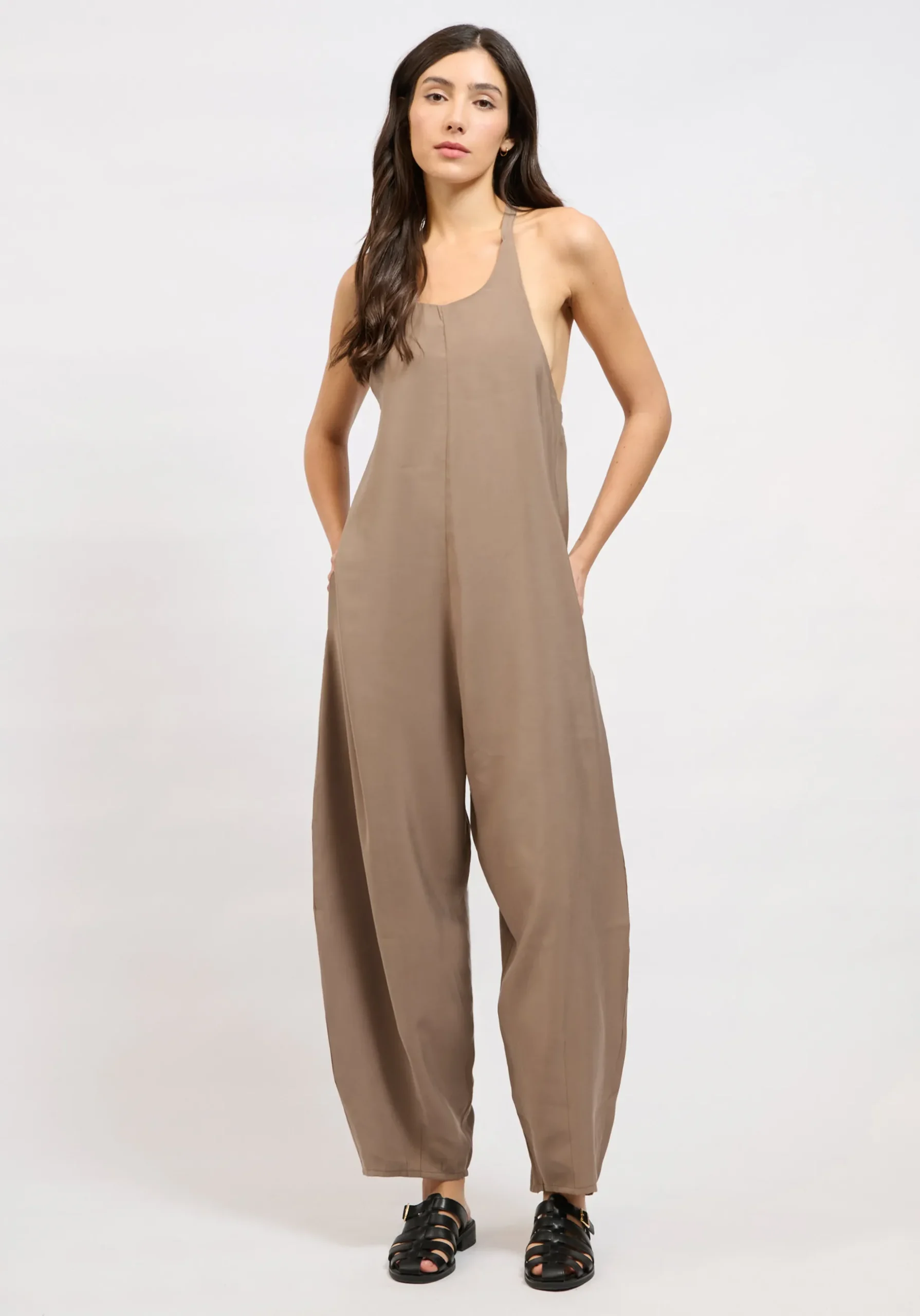 Το COLLECTIVA NOIR March Jumpsuit είναι ένα statement κομμάτι που συνδυάζει άνεση και μοντέρνα αισθητική. Η wide και airy γραμμή με balloon-style λεπτομέρειες στα πόδια δημιουργεί κίνηση και κομψότητα, ενώ η sleeveless σχεδίαση προσθέτει φρεσκάδα και θηλυκότητα.