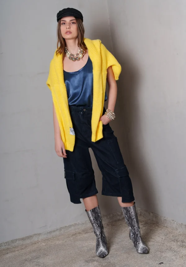 Η άνετη γραμμή και το απαλό, πλούσιο ύφασμα την καθιστούν ιδανική για καθημερινή χρήση, από το πρωί μέχρι το βράδυ. Χειροποίητα κατασκευασμένη στην Αθήνα με ιταλικά νήματα, συνδυάζει άνεση, ποιότητα και στιλ.