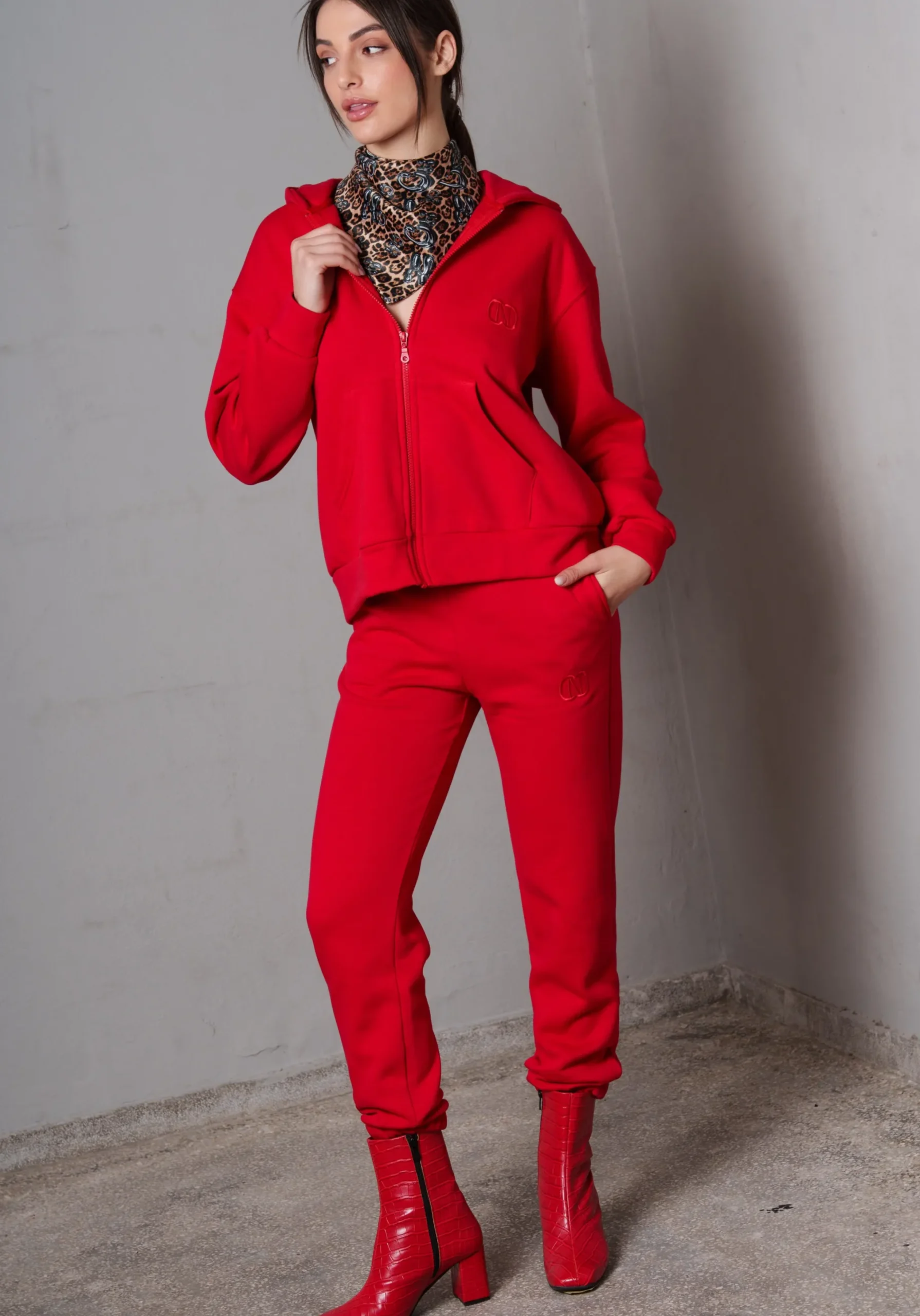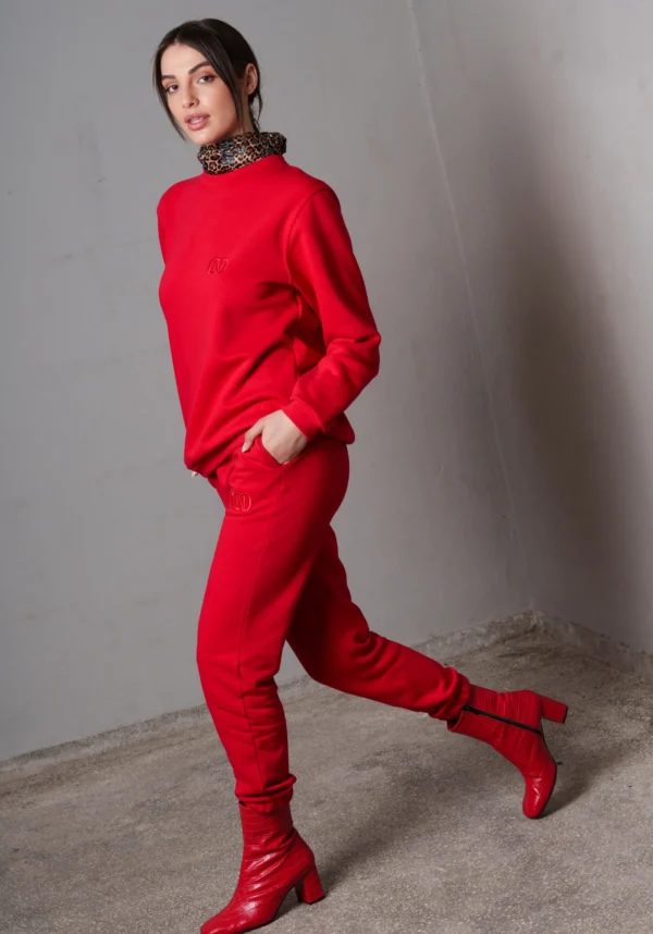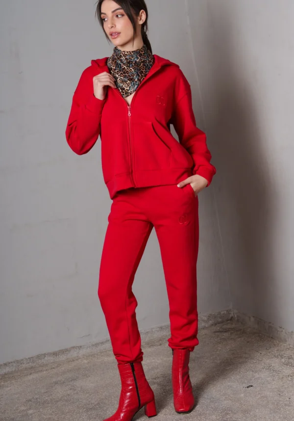 Διαθέτει carrot γραμμή, ελαστική μέση με ρυθμιζόμενο κορδόνι, πλαϊνές τσέπες και τελείωμα με λάστιχο για άψογη εφαρμογή. Το κεντητό λογότυπο CN προσθέτει premium αισθητική, ενώ το έντονο κόκκινο χρώμα την κάνει statement κομμάτι.