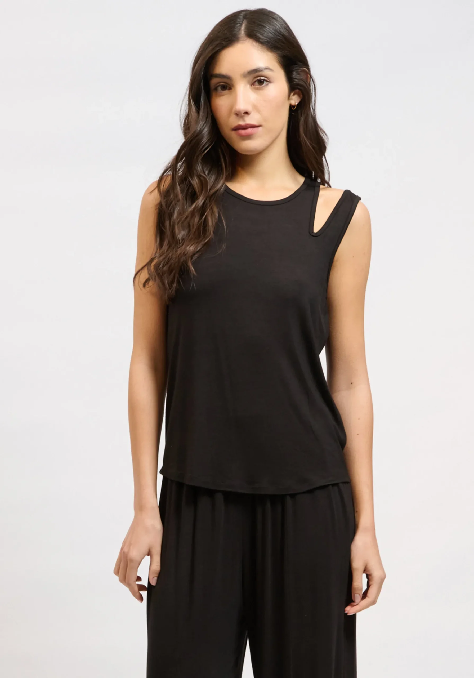 Το COLLECTIVA NOIR Zinia Top είναι ένα minimal κομμάτι με σύγχρονη αισθητική, σχεδιασμένο για άνεση και ευελιξία. Το αμάνικο σχέδιο με στρογγυλή λαιμόκοψη προσφέρει καθαρές γραμμές και διαχρονικό στυλ, ιδανικό για καθημερινή χρήση.