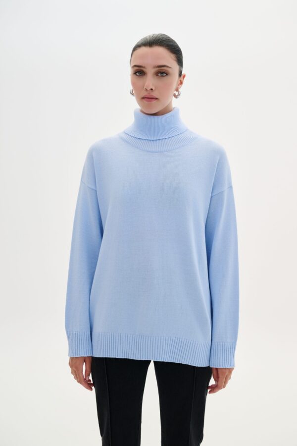 Η COMBOS Turtleneck Basic Μπλούζα σε σιελ χρώμα αποτελεί ένα απαραίτητο basic κομμάτι για κάθε γυναικεία γκαρνταρόμπα. Κατασκευασμένη από 100% υψηλής ποιότητας ακρυλικό ύφασμα (HB Acrylic), προσφέρει απαλή υφή, άνεση και ζεστασιά, ιδανική για τους φθινοπωρινούς και χειμερινούς μήνες.