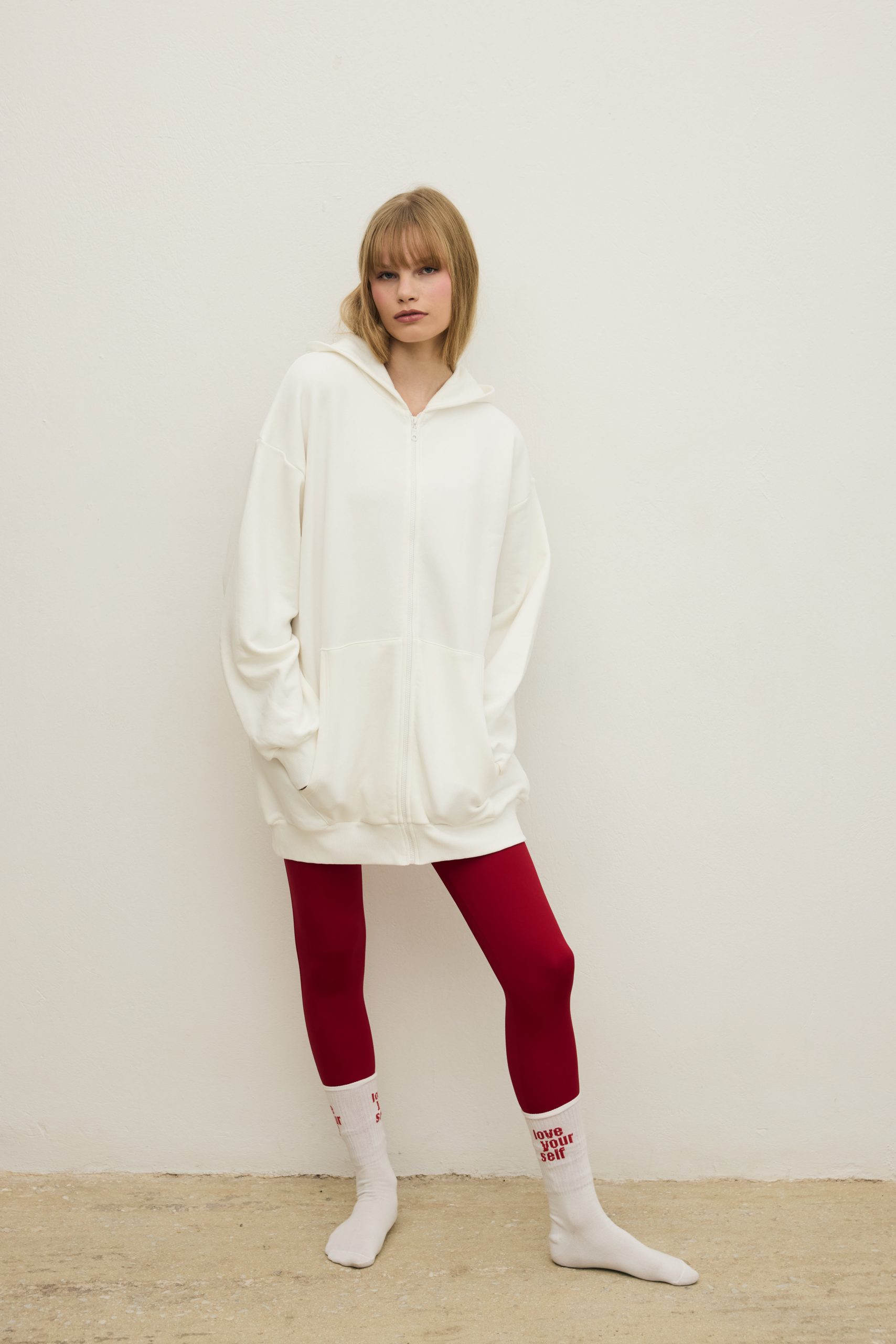 Άνετο hoodie one size από βαμβακερό μίγμα, με μήνυμα “Love Yourself”. Κατασκευή στην Ελλάδα.
