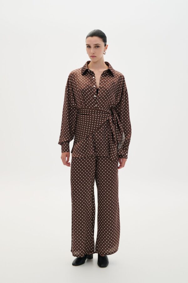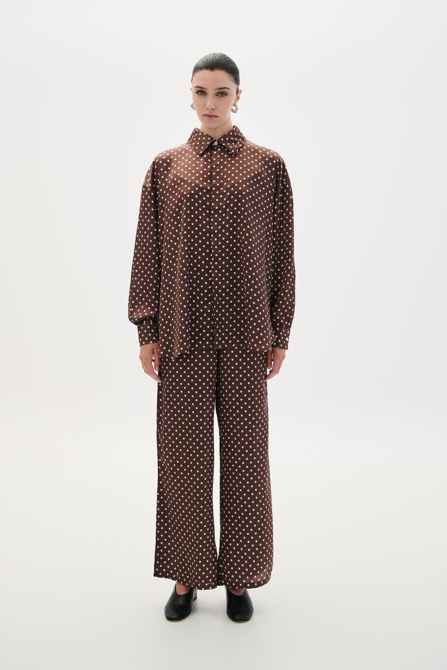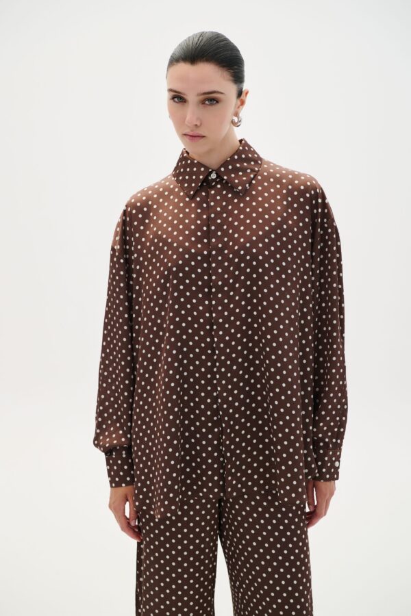 Ανανεώστε τη γκαρνταρόμπα σας με το COMBOS Shirt Polka Dots Brown, ένα κομψό πουκάμισο που ξεχωρίζει για το πουά μοτίβο του και το ζεστό καφέ χρώμα. Κατασκευασμένο από 100% polyester, προσφέρει ελαφρύ και άνετο ύφασμα, ιδανικό για όλη τη μέρα.