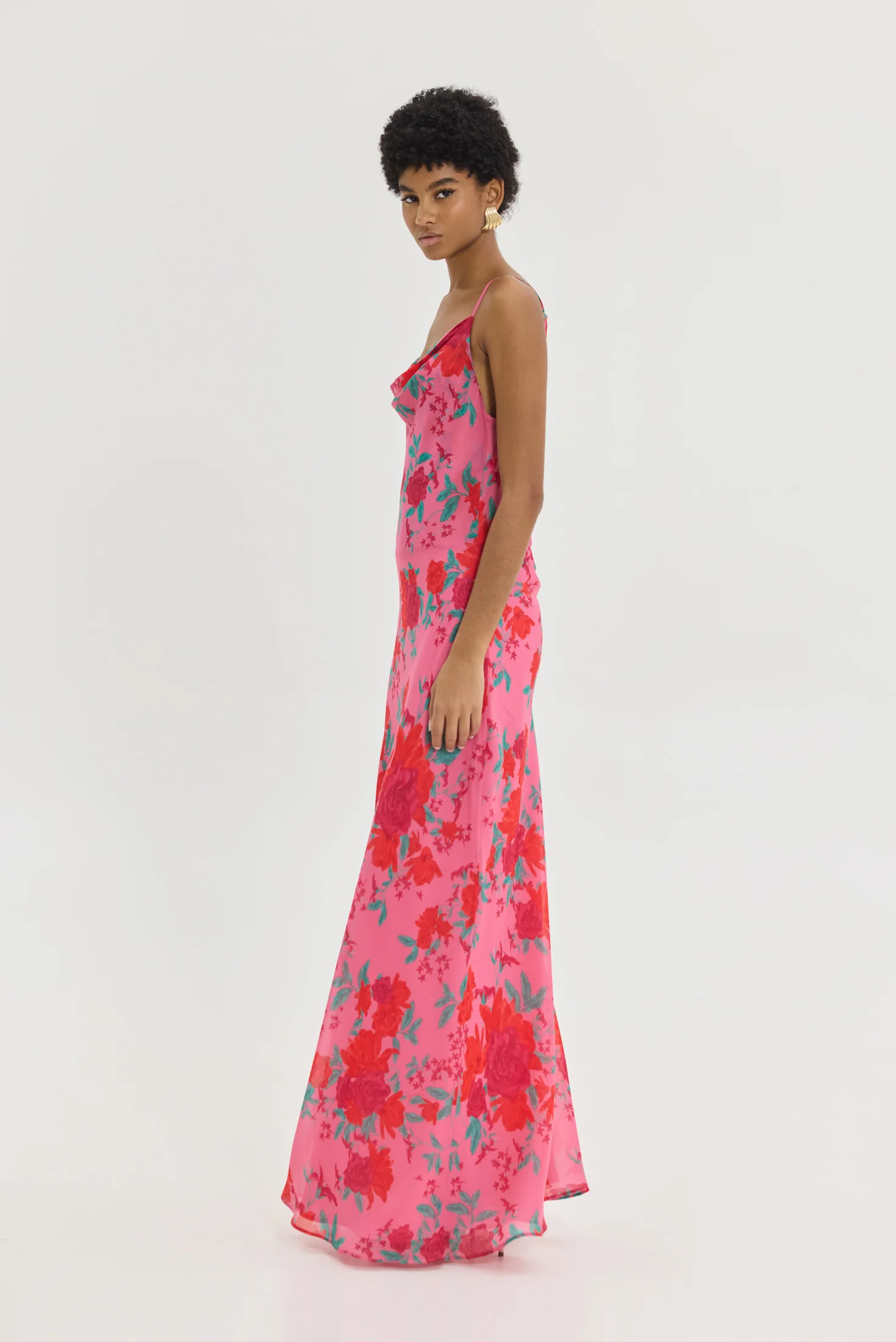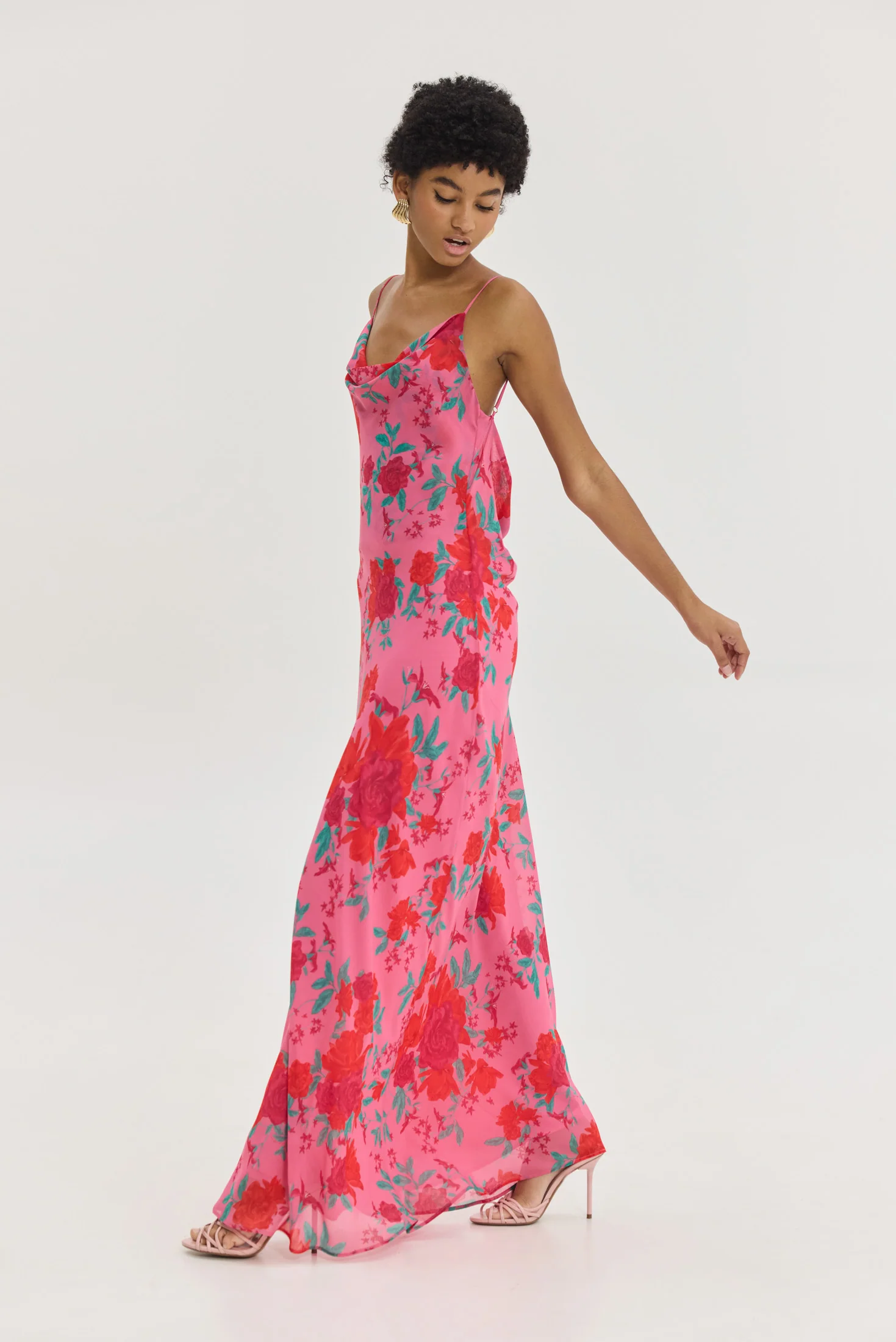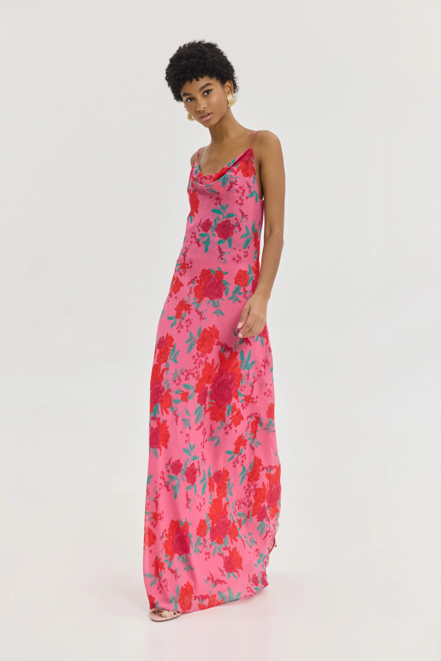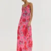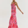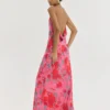 Maxi HEMITHEA Austin Dress σε φούξια με floral pattern, ντραπέ μπούστο, ανοιχτή πλάτη και ρυθμιζόμενες τιράντες. Αέρινο φόρεμα για κομψές καλοκαιρινές εμφανίσεις.