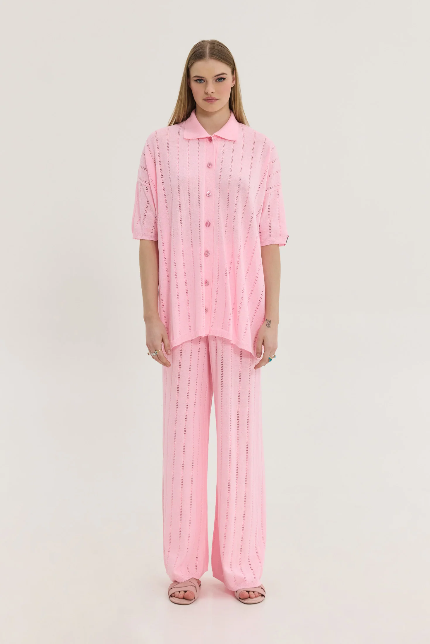 - Σχέδιο: Ελαφρώς διάτρητο πλεκτό με κάθετη διάταξη