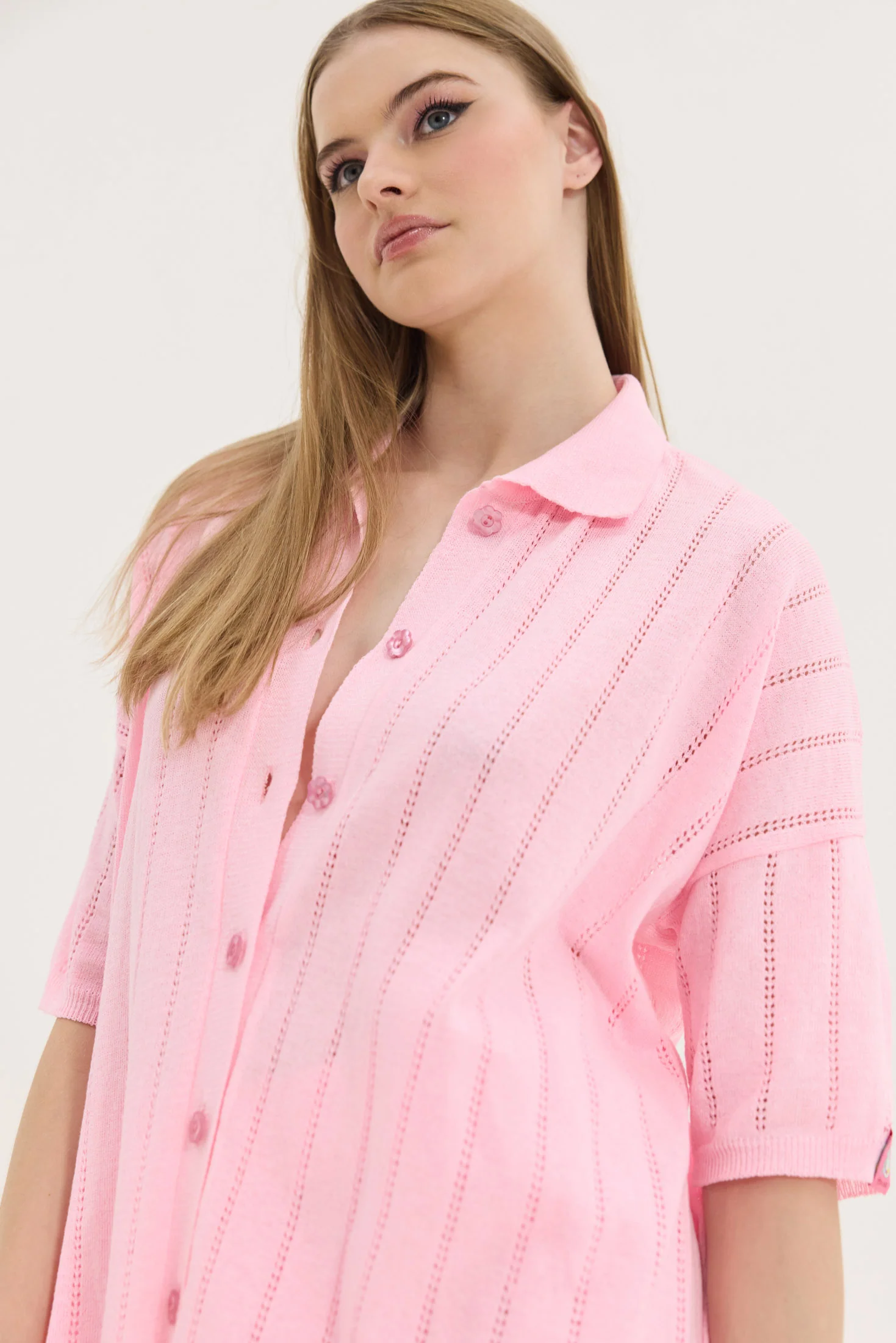 Το HEMITHEA Azores Shirt (Pink) είναι ένα ιδιαίτερο πλεκτό πουκάμισο που συνδυάζει μοντέρνο design και άνεση. Το έντονο ροζ χρώμα και η ελαφρώς διάτρητη πλεκτή ύφανση δημιουργούν ένα κομψό και ταυτόχρονα δροσερό κομμάτι για καθημερινές και καλοκαιρινές εμφανίσεις.