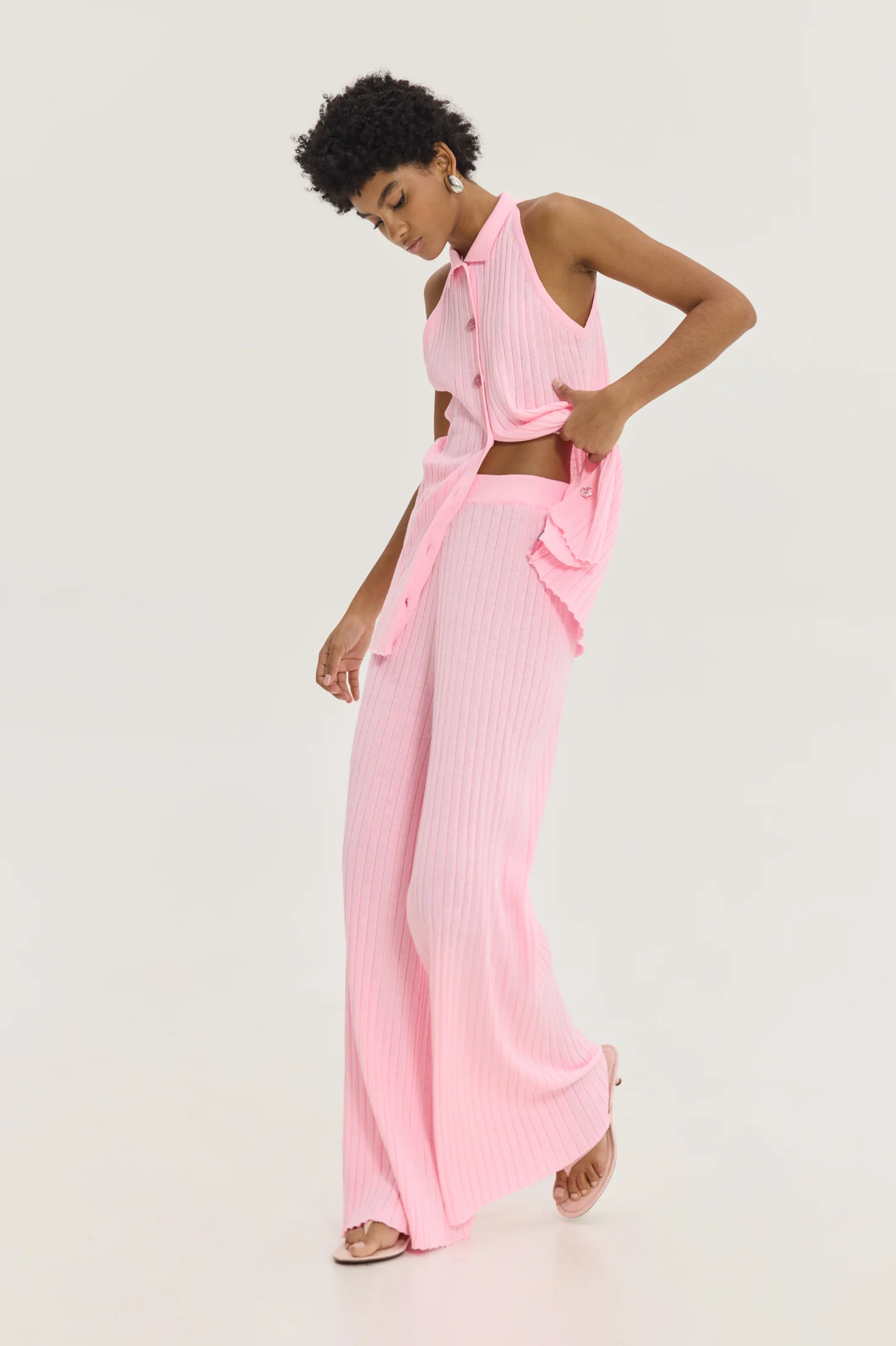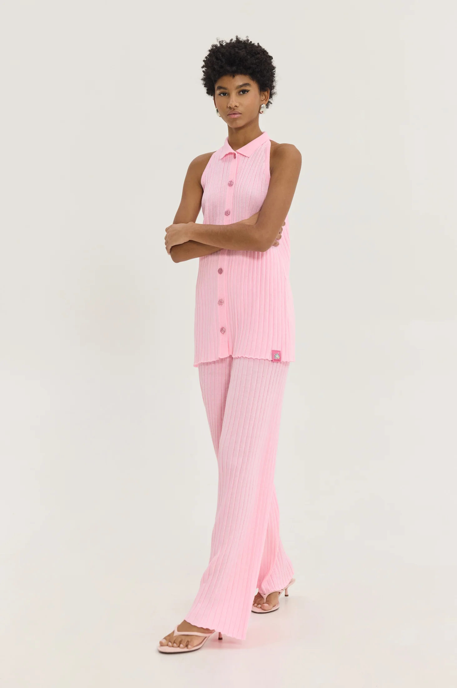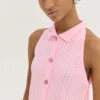 Το HEMITHEA Bob Top (Pink) είναι ένα πολυλειτουργικό πλεκτό top / cardigan σε έντονο ροζ χρώμα, ιδανικό για layering ή solo εμφανίσεις. Το halterneck με γιακά μπροστά και πίσω δημιουργεί μοντέρνα σιλουέτα, ενώ τα κουμπιά περλέ μαργαρίτες στο ίδιο χρώμα προσθέτουν μια διακριτική, θηλυκή λεπτομέρεια.