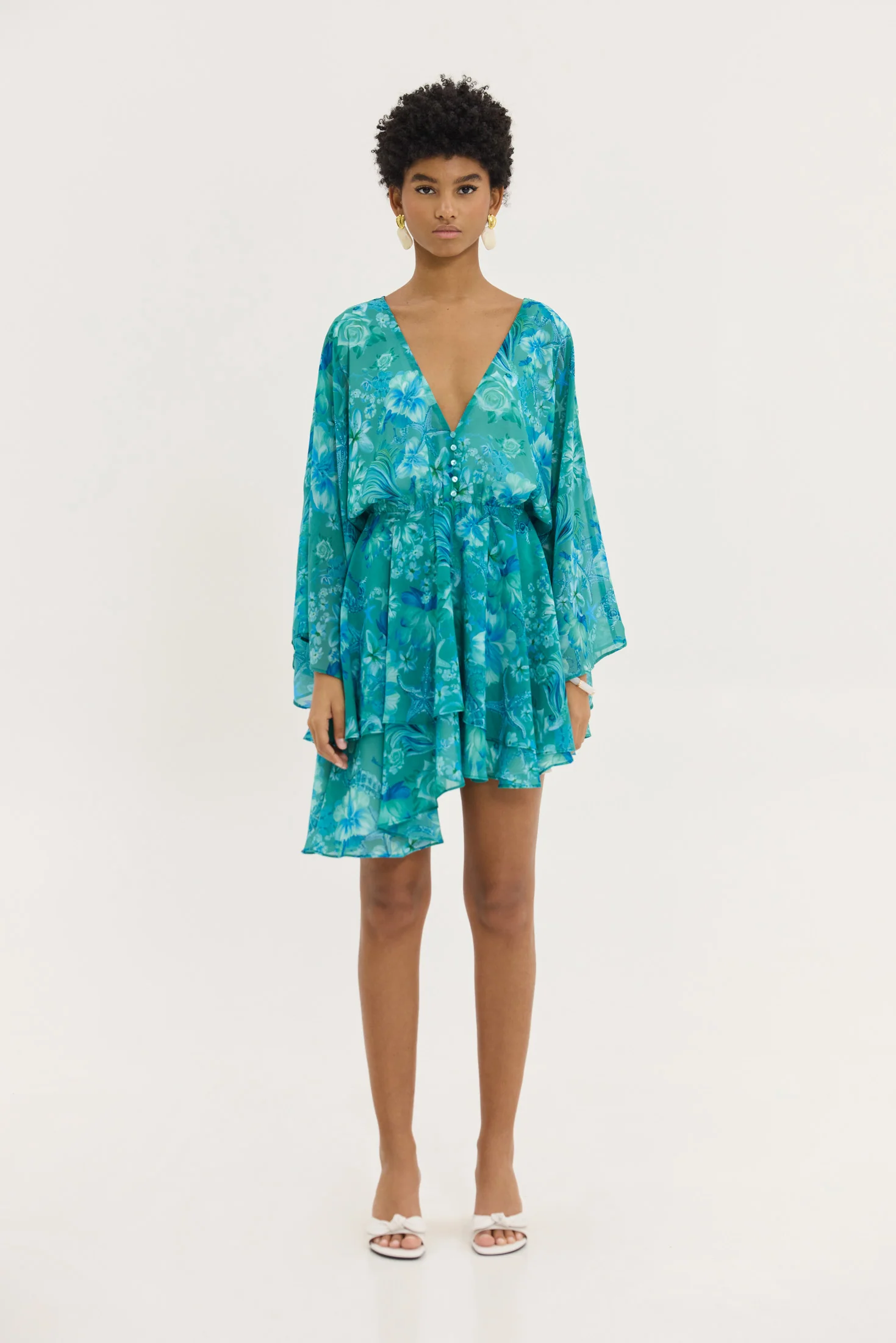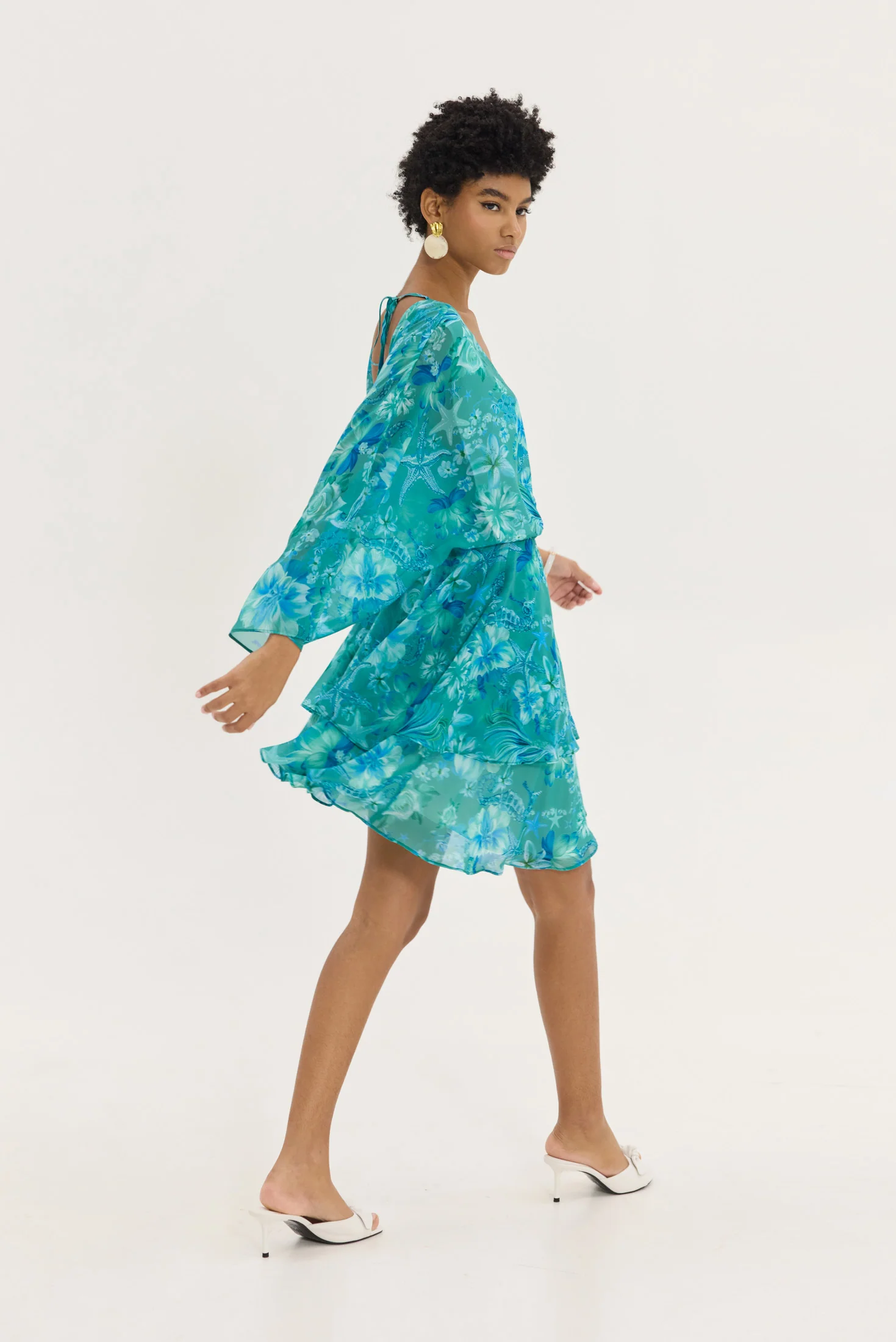 Ένα μοναδικό mini φόρεμα που συνδυάζει αέρινη κίνηση, floral και θαλασσινά μοτίβα, για ένα κομψό και παιχνιδιάρικο στυλ.