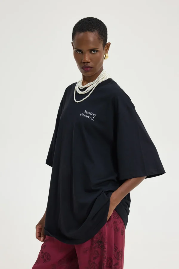 Η boxy και long γραμμή του, σε συνδυασμό με τα oversized μανίκια που φτάνουν μέχρι τον αγκώνα, προσφέρει άνετη εφαρμογή και ανεπιτήδευτο στυλ. Η κλασική λαιμόκοψη το καθιστά ιδανικό για layering ή για να φορεθεί μόνο του.