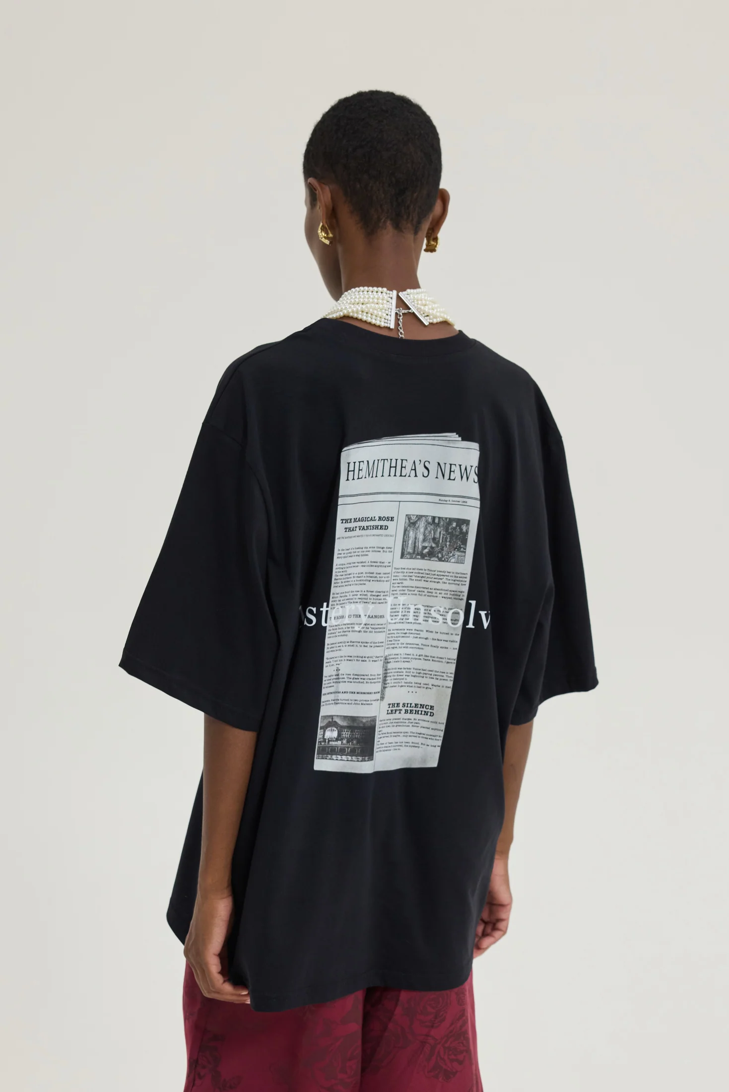 Το HEMITHEA Cheetah T-Shirt Black (Hemithea News) είναι ένα oversized μαύρο t-shirt με urban αισθητική και statement χαρακτήρα. Διαθέτει στάμπα Hemithea News στο μπροστινό μέρος, προσθέτοντας μια μοντέρνα και ξεχωριστή λεπτομέρεια στο casual look.