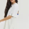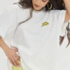 Η boxy και long γραμμή προσφέρει χαλαρή εφαρμογή και άνεση, ενώ τα oversized μανίκια μέχρι τον αγκώνα ενισχύουν το σύγχρονο streetwear στυλ. Η κλασική λαιμόκοψη ολοκληρώνει το design με διαχρονική αισθητική.