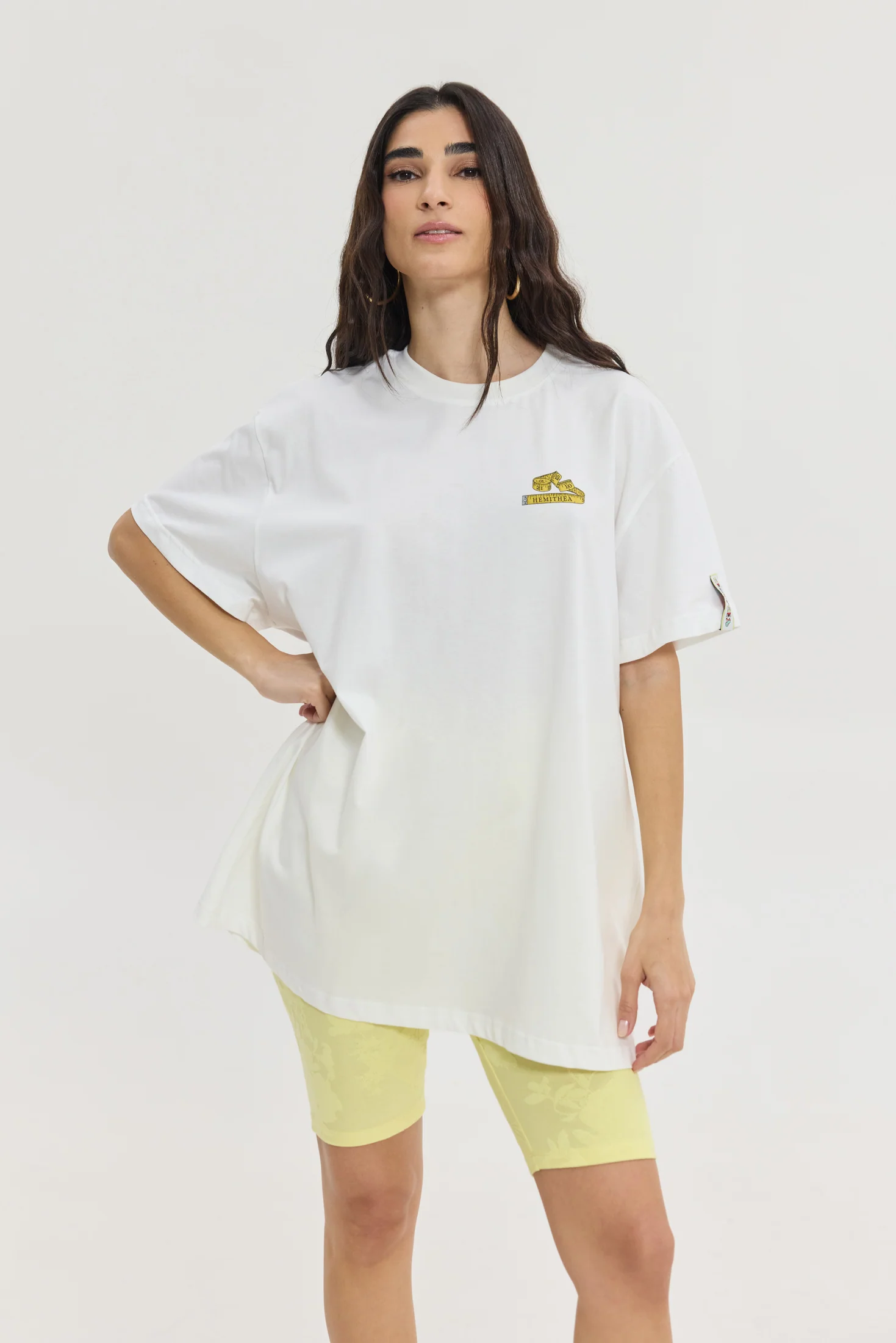 Η boxy και long γραμμή προσφέρει χαλαρή εφαρμογή και άνεση, ενώ τα oversized μανίκια μέχρι τον αγκώνα ενισχύουν το σύγχρονο streetwear στυλ. Η κλασική λαιμόκοψη ολοκληρώνει το design με διαχρονική αισθητική.