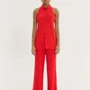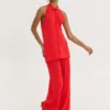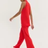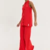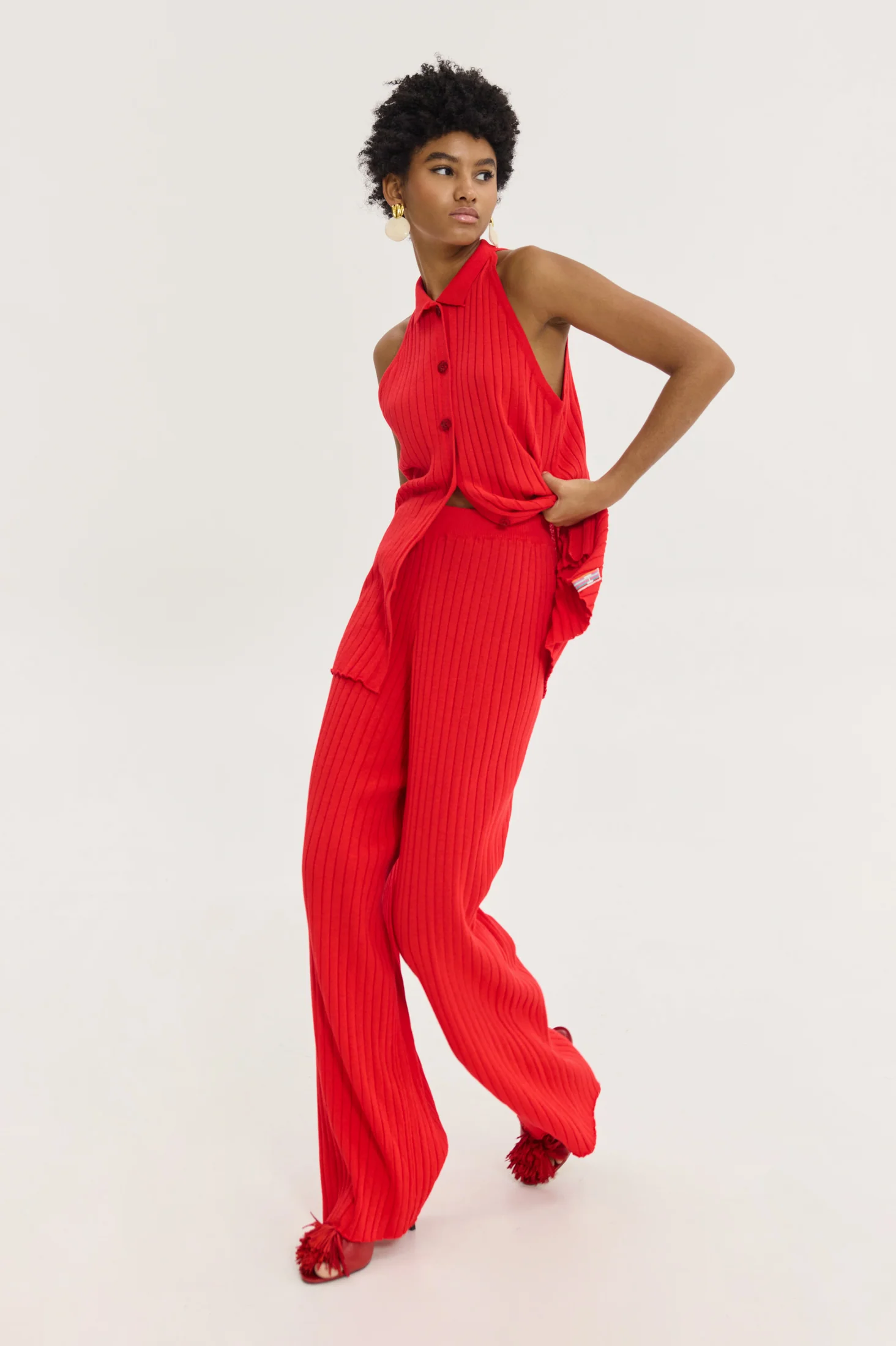 Πλεκτό HEMITHEA Ios Pants σε έντονο κόκκινο χρώμα με rib πλέξη, wide leg γραμμή και λάστιχο στη μέση. Άνετο παντελόνι με 70’s αισθητική.