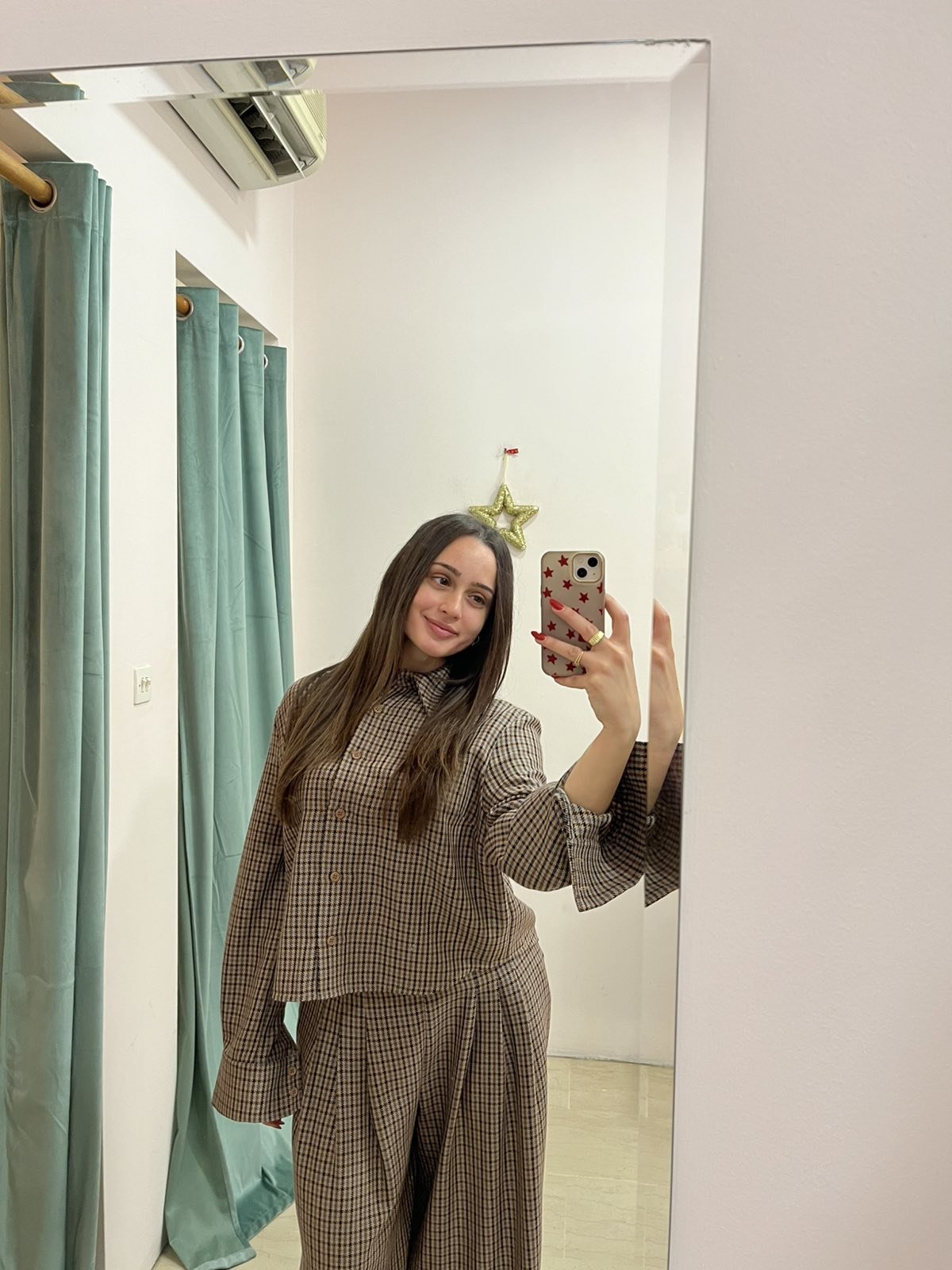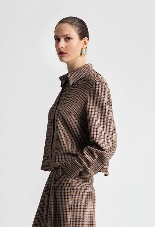 Το MOUTAKI Brown Checkered Cropped Shirt είναι ένα μοντέρνο γυναικείο πουκάμισο που συνδυάζει διαχρονικό καρό μοτίβο με σύγχρονη cropped γραμμή. Η άνετη εφαρμογή, τα μακριά μανίκια και ο κλασικός γιακάς το καθιστούν ιδανικό για all-day εμφανίσεις, από casual έως πιο προσεγμένα σύνολα.