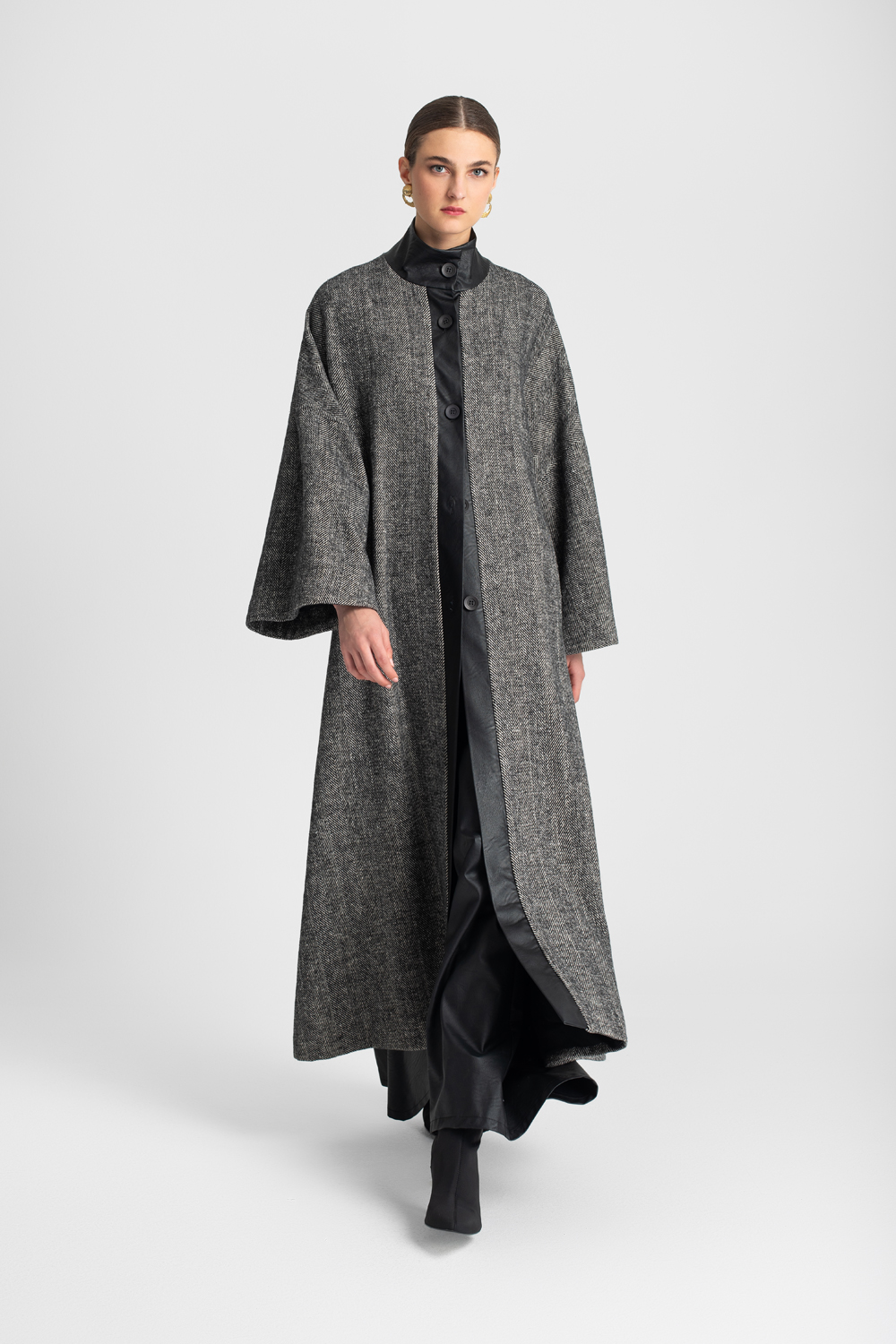 Το MOUTAKI Coat Grey Black είναι ένα κομψό και διαχρονικό μακρύ παλτό, σχεδιασμένο για να φοριέται άνετα από το πρωί έως το βράδυ. Το γκρι χρώμα του συνδυάζεται ιδανικά με τις μαύρες δερμάτινες λεπτομέρειες, προσδίδοντας σύγχρονο χαρακτήρα και ιδιαίτερο στυλ.