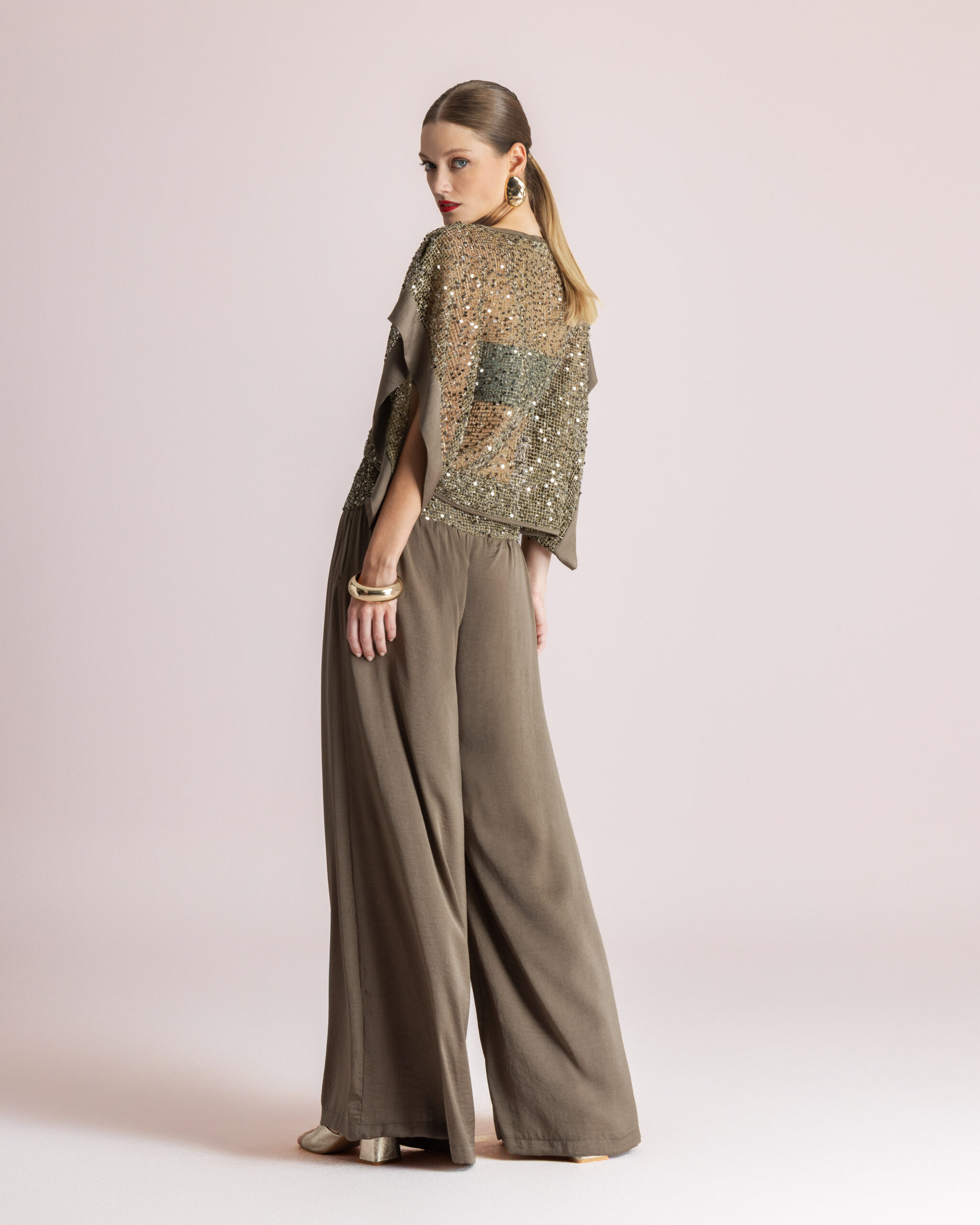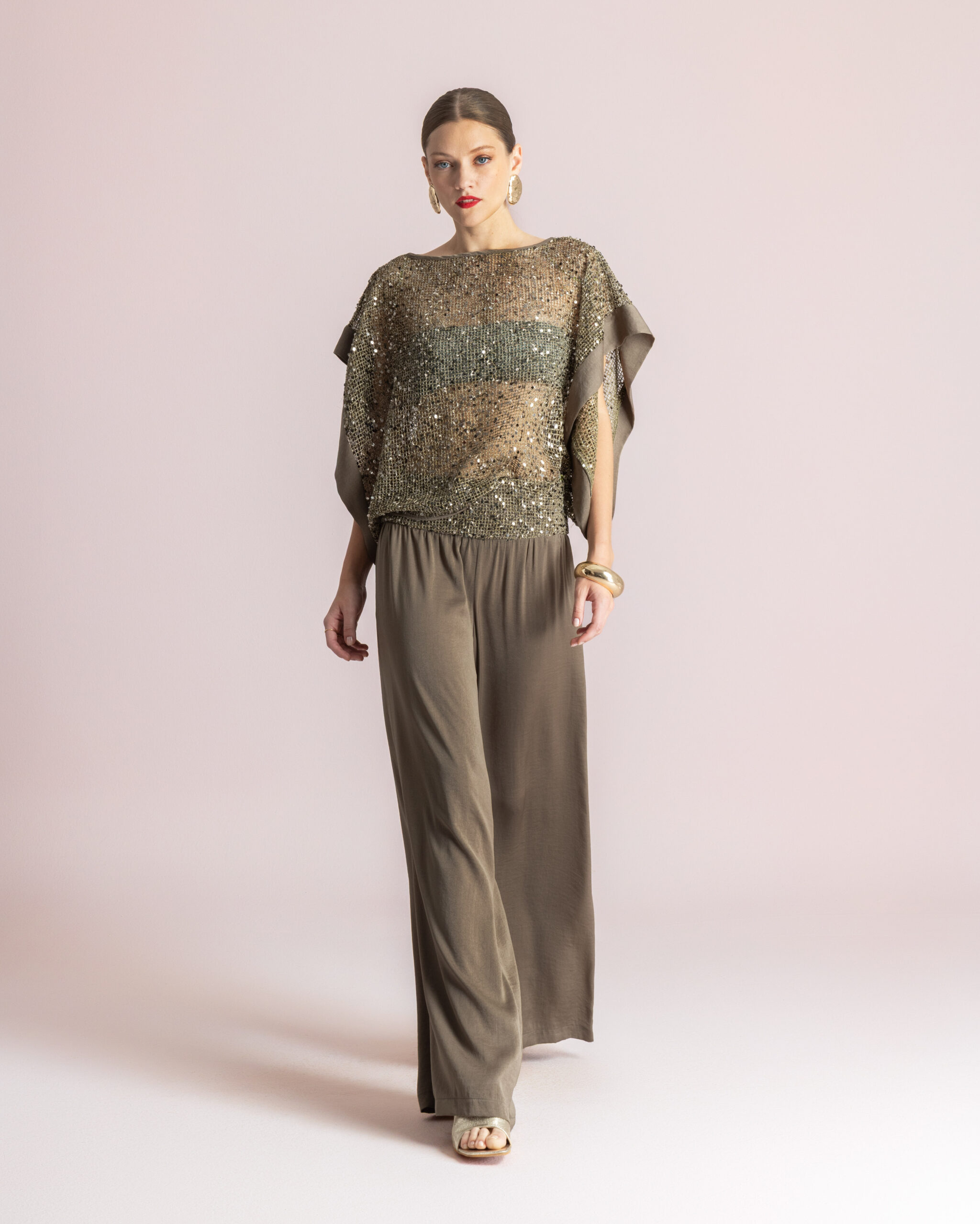 Η MOUTAKI Khaki Shiny Tunic είναι μια εντυπωσιακή μπλούζα που συνδυάζει κομψότητα και λάμψη. Το χακί χρώμα σε συνδυασμό με τις παγιέτες δημιουργεί ένα ιδιαίτερο αποτέλεσμα που ξεχωρίζει, ιδανικό για πιο stylish εμφανίσεις.