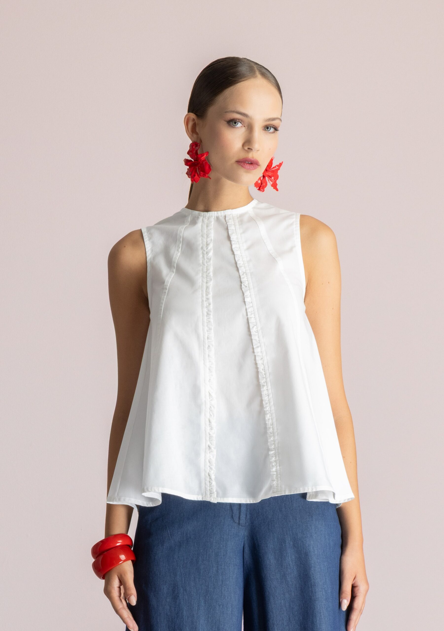 Λευκή MOUTAKI White Tunic, αμάνικη με άλφα γραμμή, από 100% βαμβάκι, ανάλαφρη και ιδανική για casual καλοκαιρινά look.