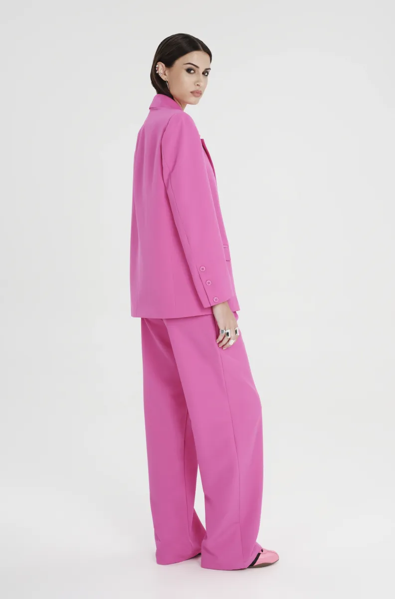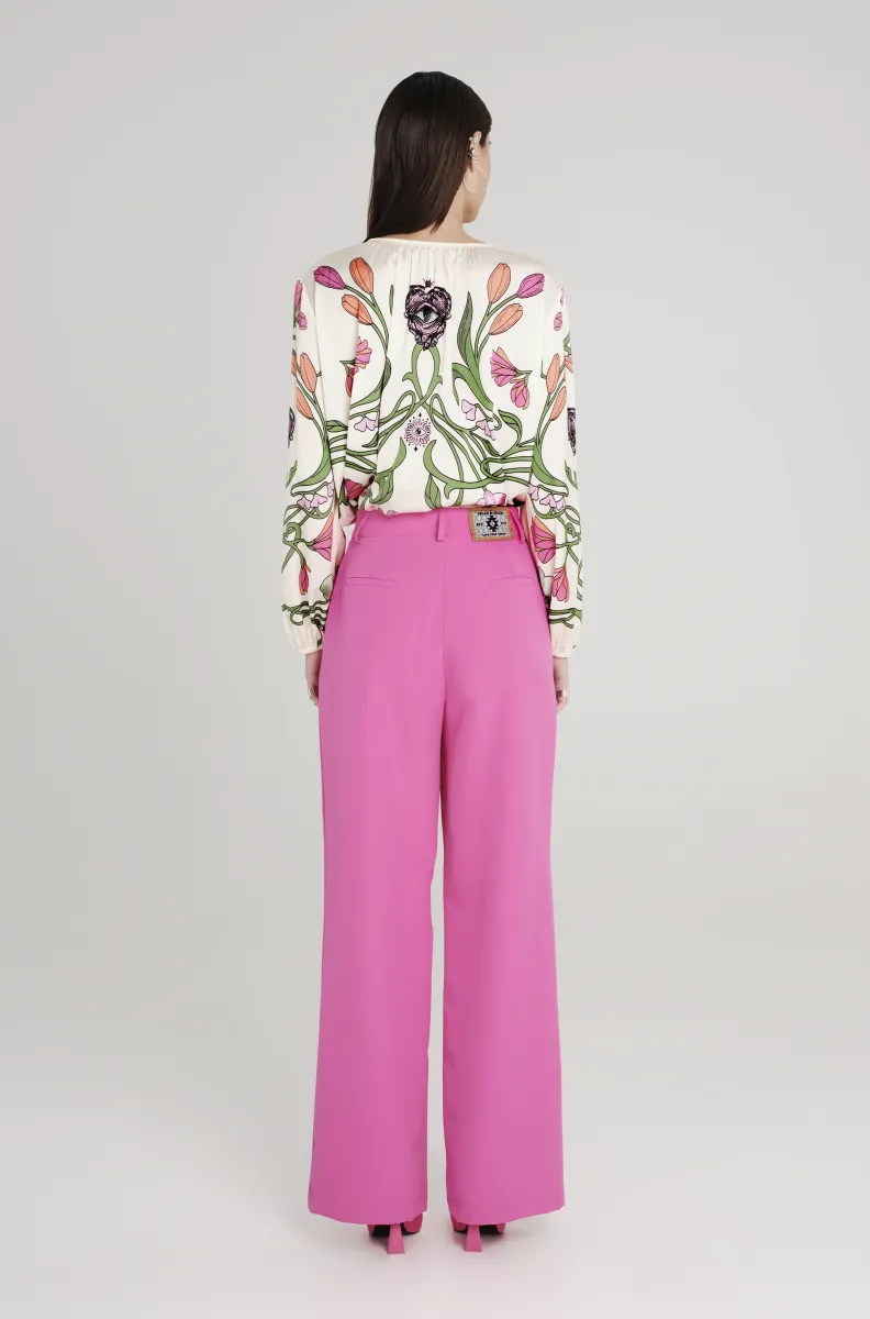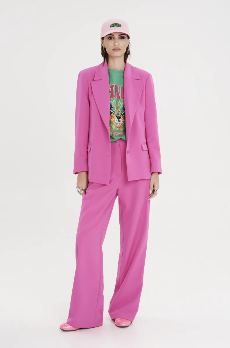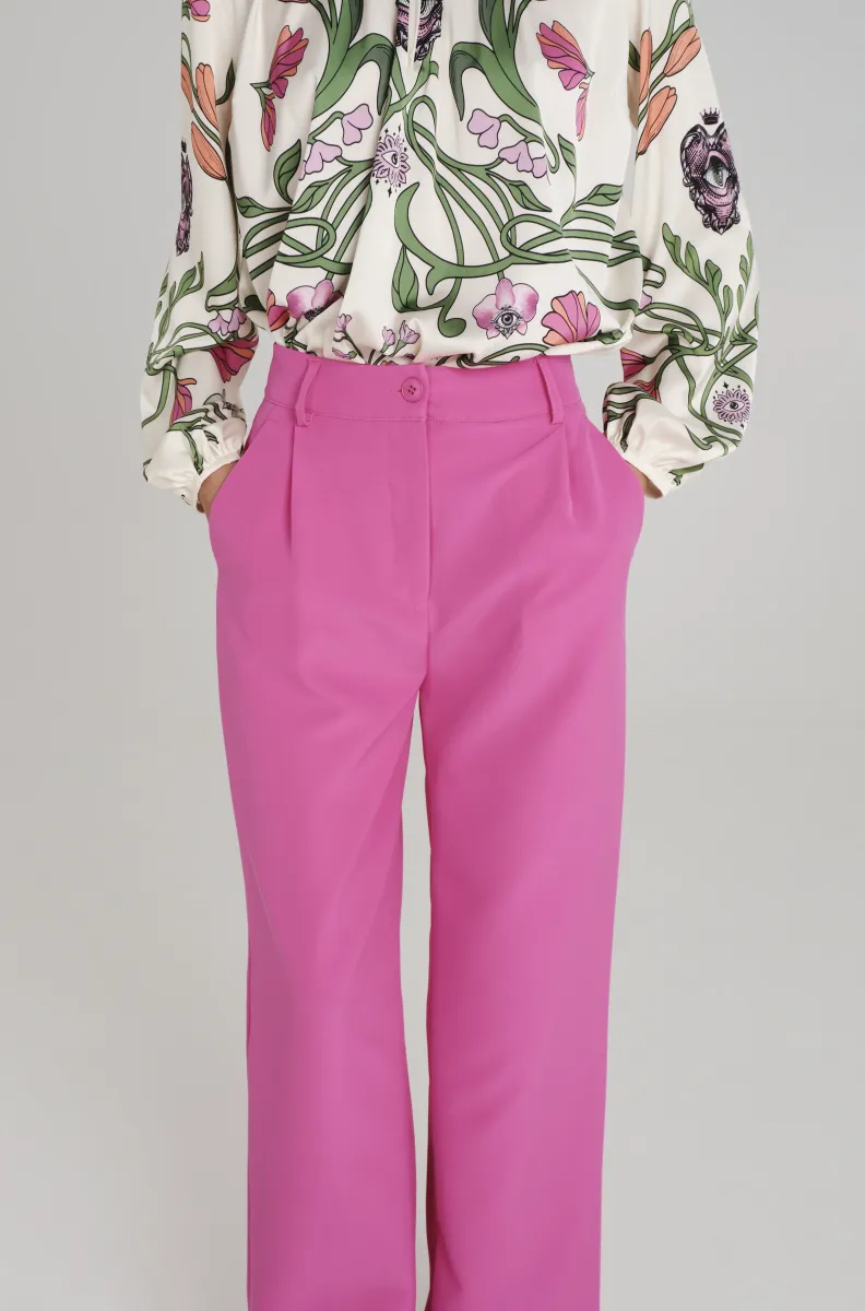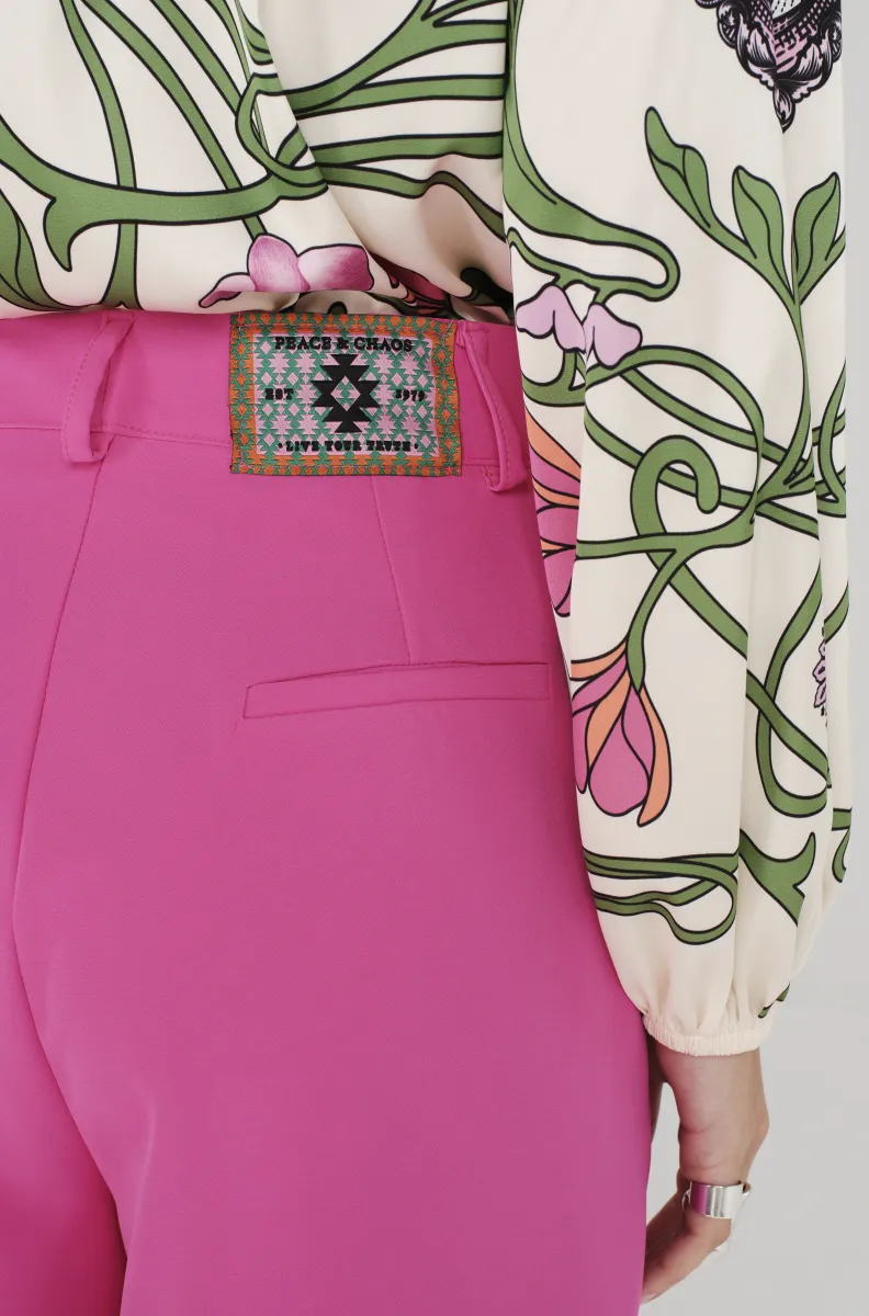 Ροζ tailored παντελόνι PEACE AND CHAOS σε ίσια γραμμή με πιέτες και ιδιαίτερη woven label λεπτομέρεια.