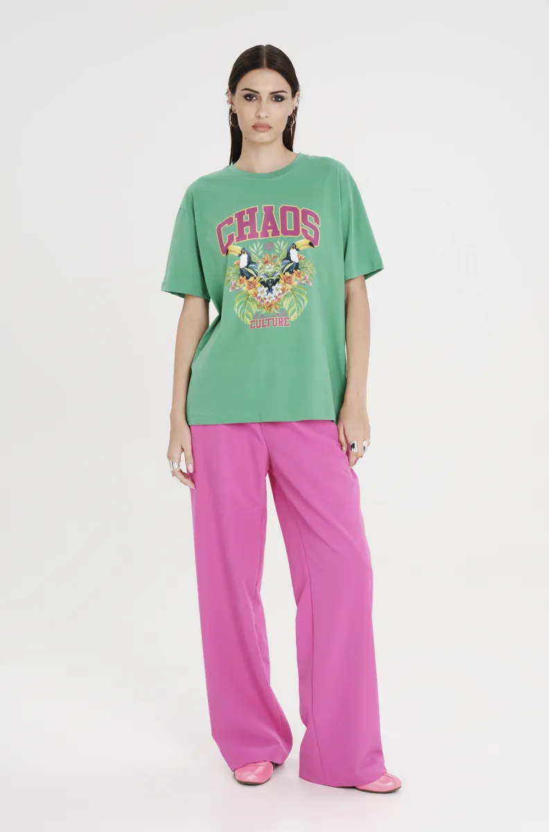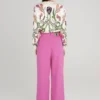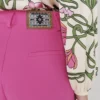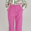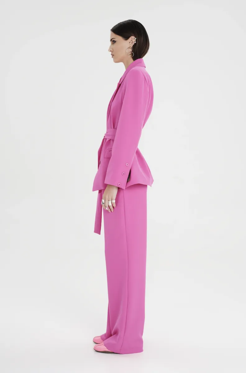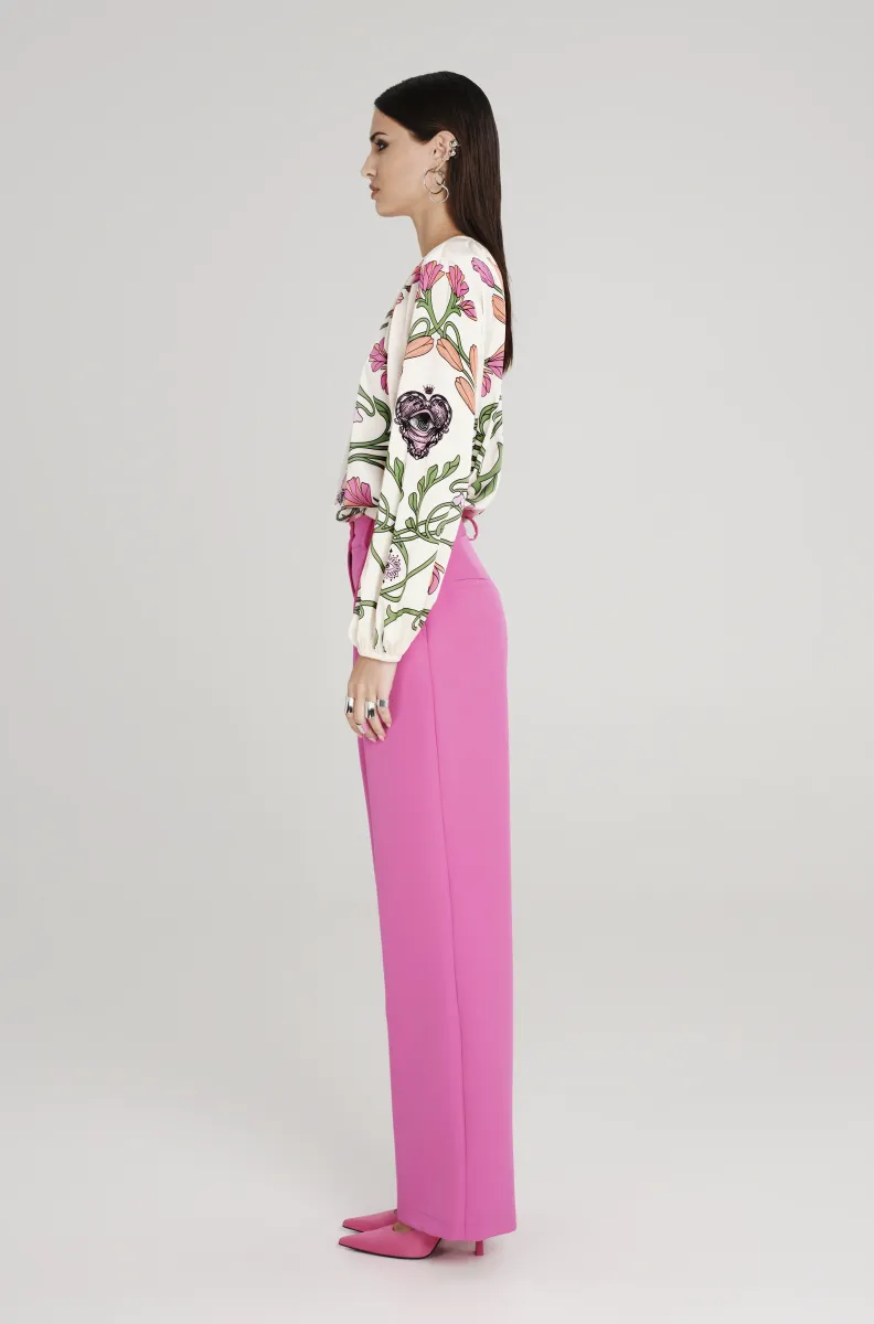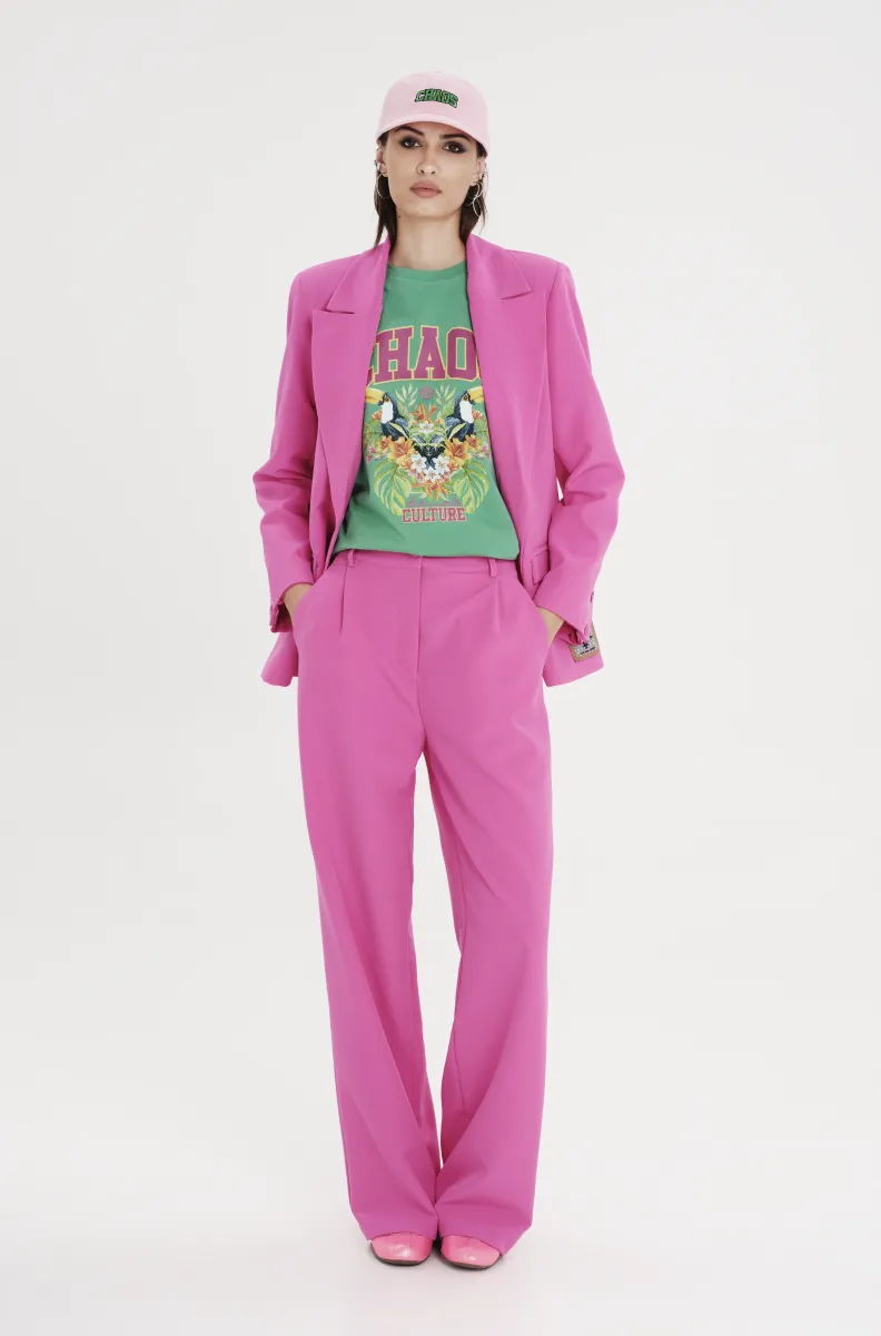 Ροζ tailored παντελόνι PEACE AND CHAOS σε ίσια γραμμή με πιέτες και ιδιαίτερη woven label λεπτομέρεια.
