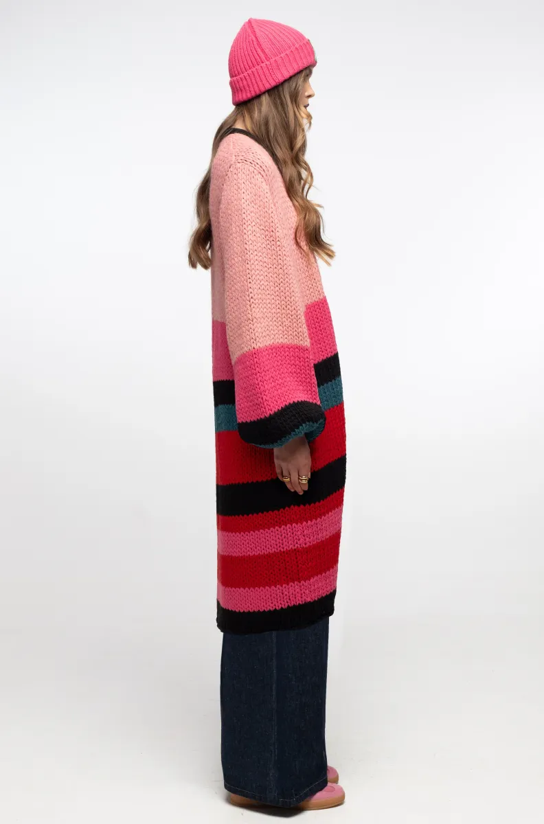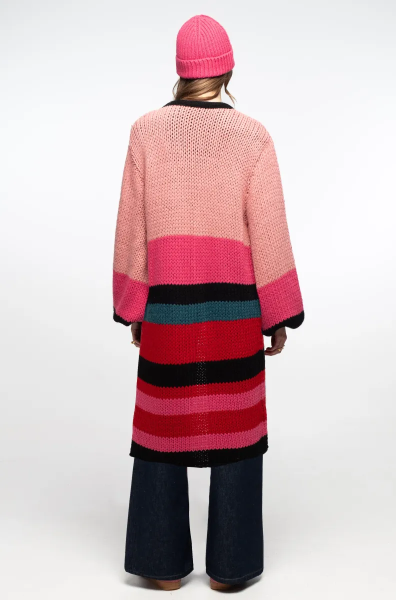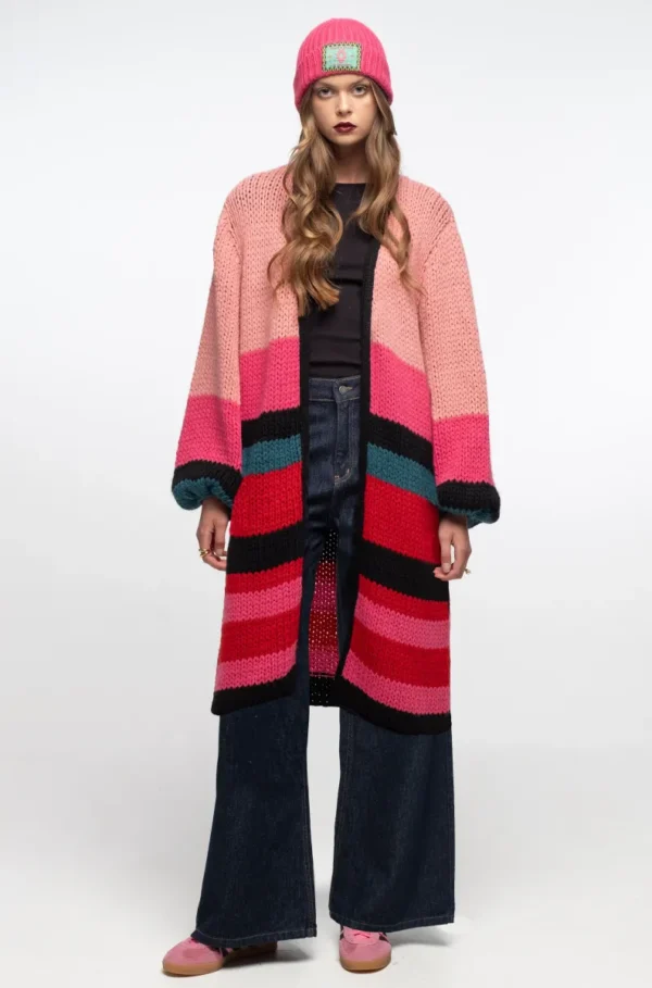 Ζεστάσου με το Peace + Chaos Candyfloss Cardigan, ένα μοναδικό chunky cable knit πλεκτό που ξεχωρίζει με το colour blocking σχέδιο του, σε αποχρώσεις του μαύρου, κόκκινου, ροζ, teal και φούξια.