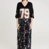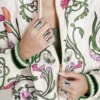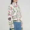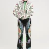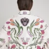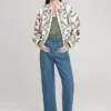 Bomber jacket PEACE AND CHAOS σε ecru taffeta με placement print, χρυσό μεταλλικό φερμουάρ και lace rib λεπτομέρειες.