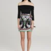 Το ρούχο έχει δημιουργηθεί με την τεχνική placement printing, όπου κάθε τμήμα διαθέτει μοναδικό print που, όταν συνδυάζεται, δημιουργεί ένα ολοκληρωμένο καλλιτεχνικό αποτέλεσμα.