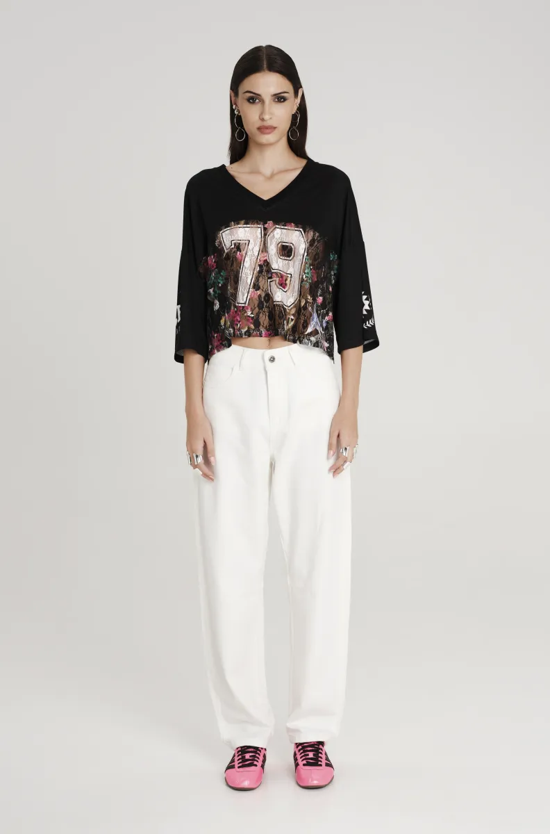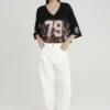 Η rib V-neck λαιμόκοψη και τα oversized μανίκια προσδίδουν sportswear χαρακτήρα, ενώ η cropped γραμμή και η loose εφαρμογή χαρίζουν σύγχρονη, δυναμική σιλουέτα.
