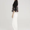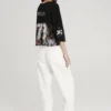 Το ρούχο έχει δημιουργηθεί με την τεχνική placement printing, όπου κάθε τμήμα διαθέτει μοναδικό print που, όταν συνδυάζεται, δημιουργεί ένα ολοκληρωμένο καλλιτεχνικό αποτέλεσμα.