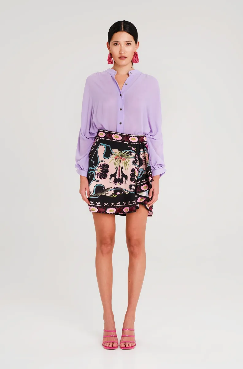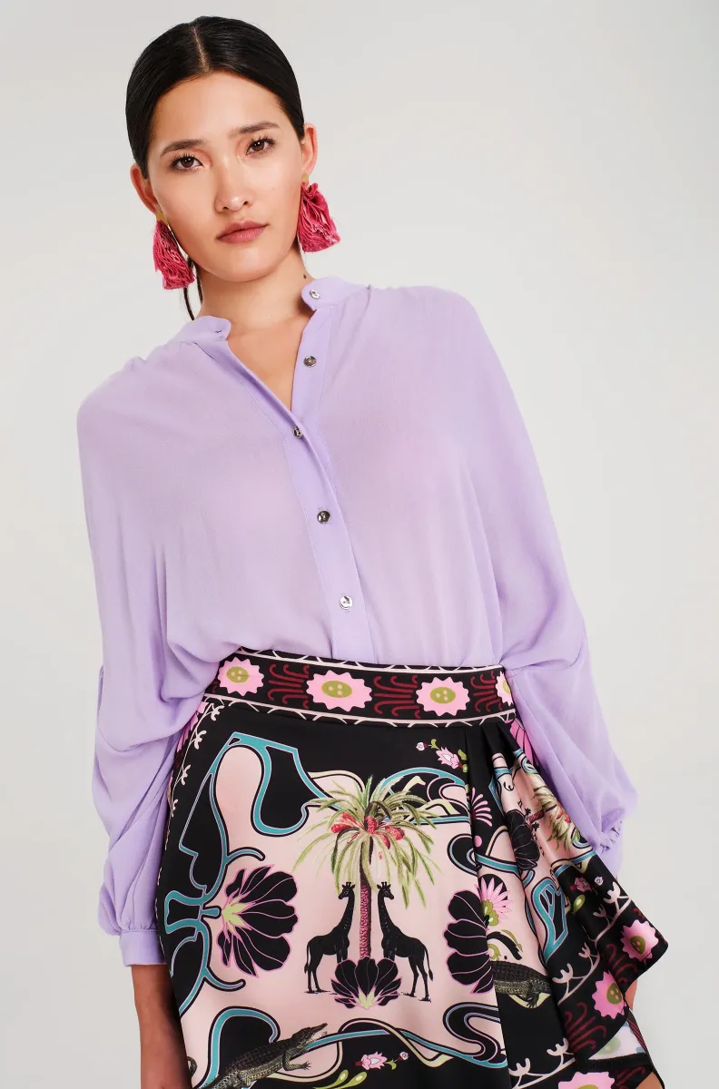 Το πουκάμισο μπορεί να συνδυαστεί εύκολα με φούστες ή παντελόνια της συλλογής για εντυπωσιακά looks.